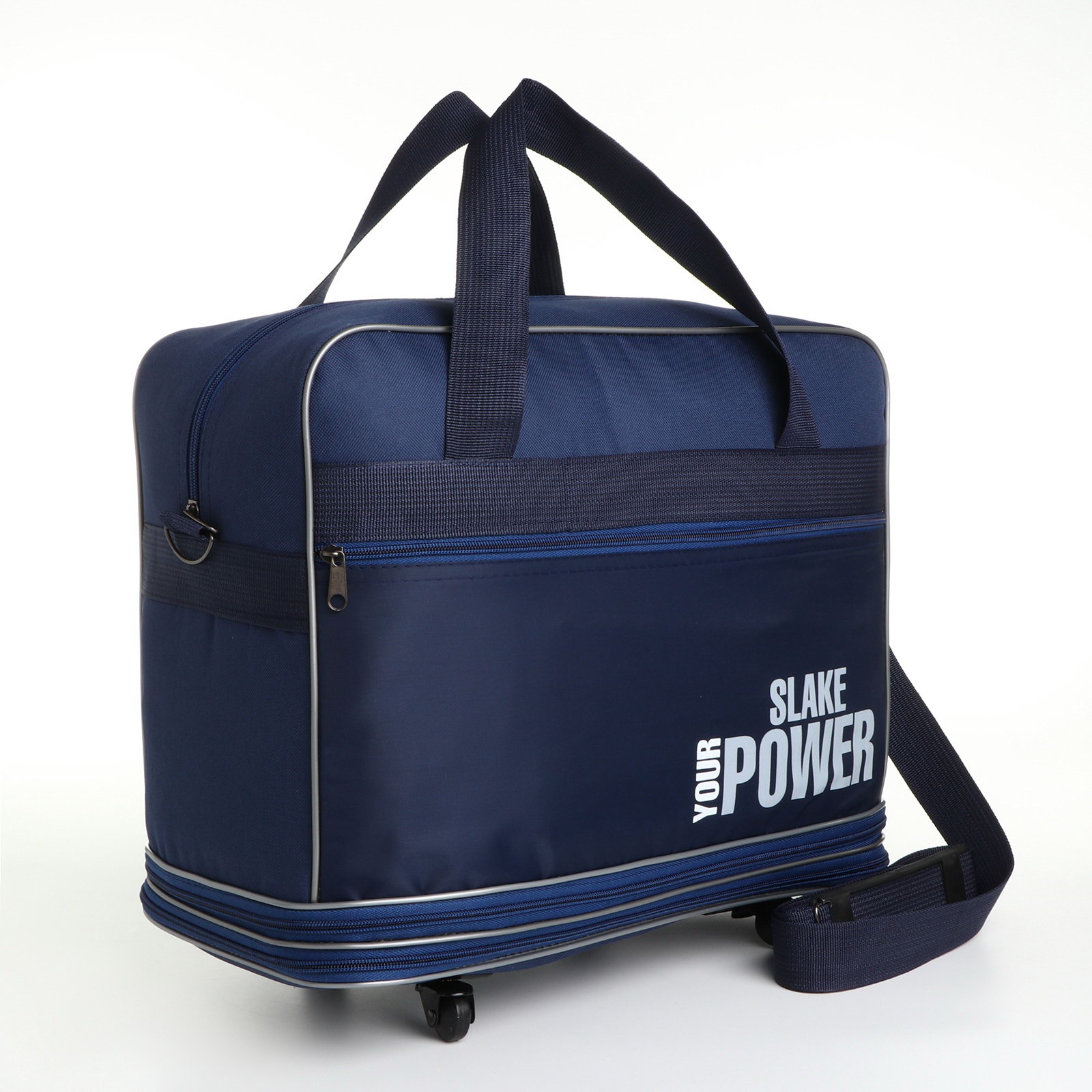 Сумка дорожная 20"На 4 колёсах, отдел на молнии, с увеличением, наружный карман, длинный ремень, синяя, 21x42x32 см., Lucky Mark, Россия