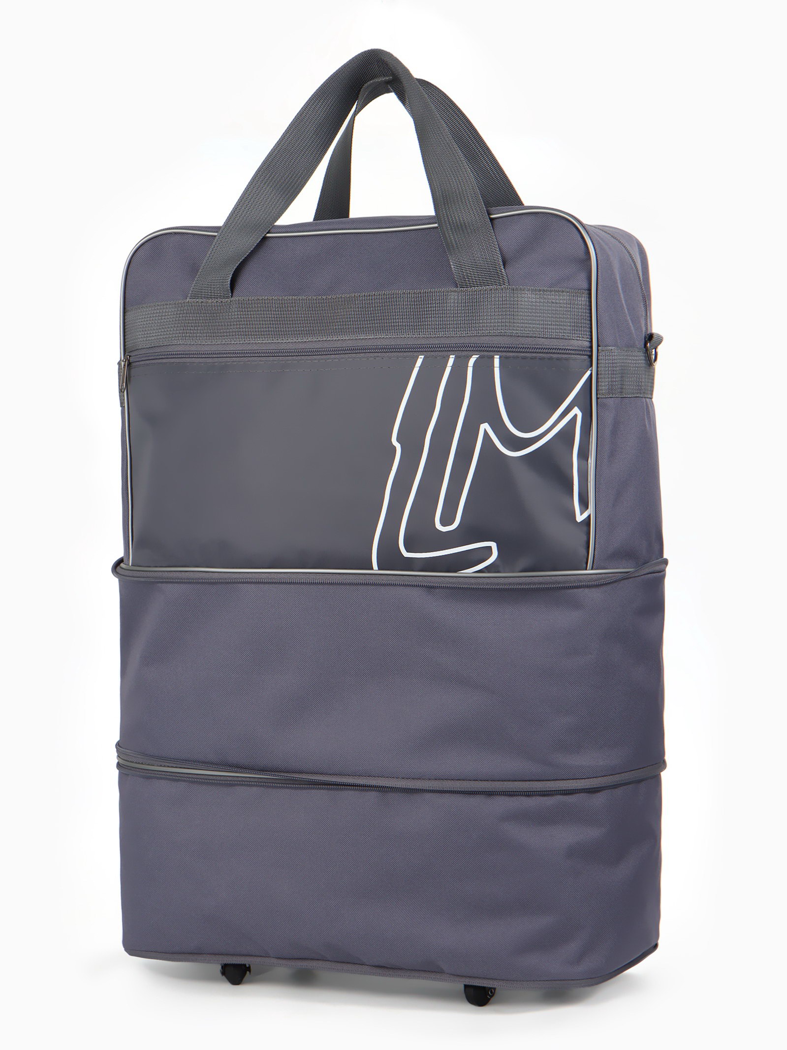 Сумка дорожная 20"на 4 колёсах, отдел на молнии, с увеличением, наружный карман, длинный ремень, серая, 21x42x32 см., Lucky Mark, Россия