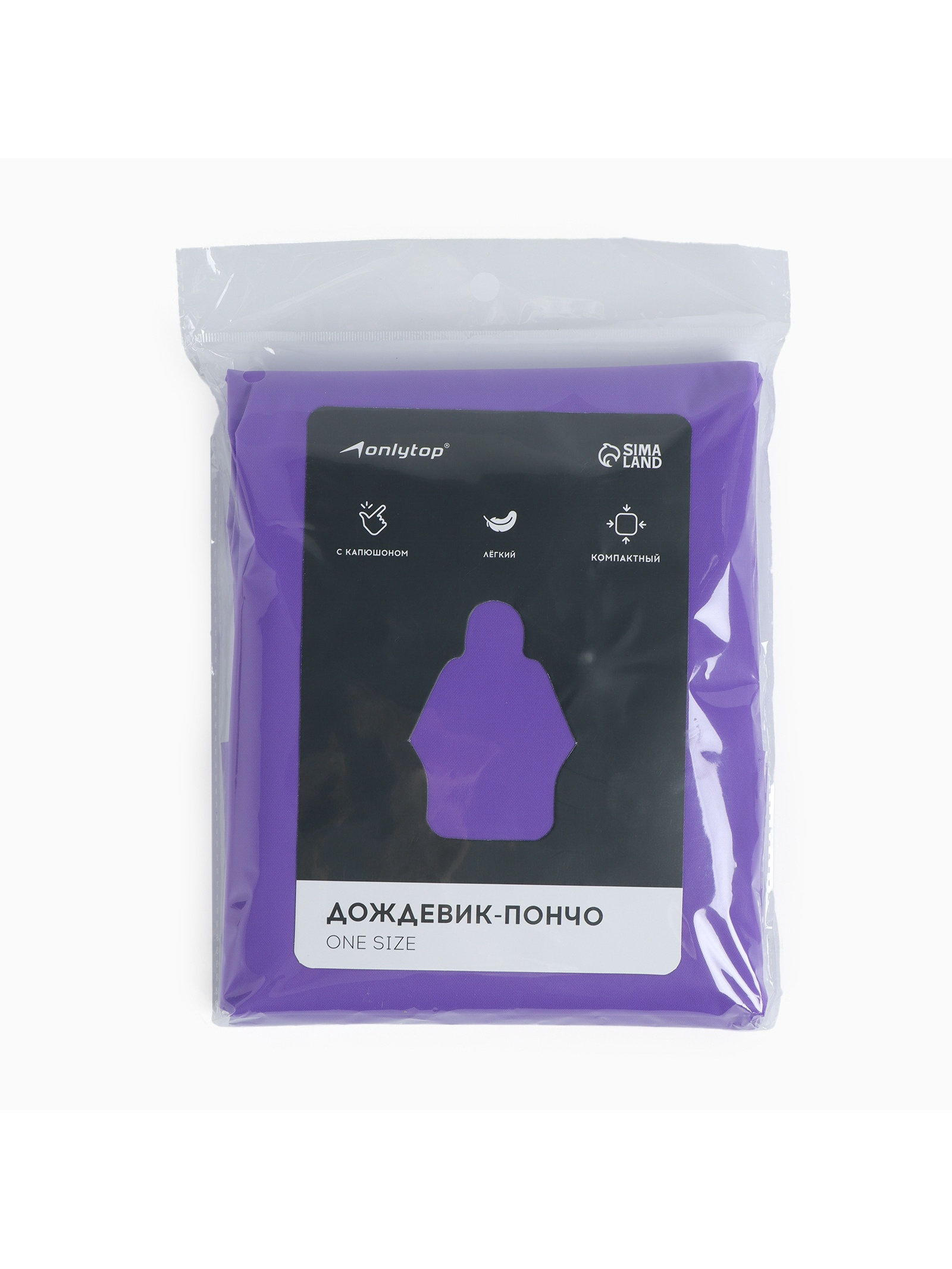 Дождевик - пончо, взрослый, р. 48-50, фиолетовый, ONLYTOP, Китай