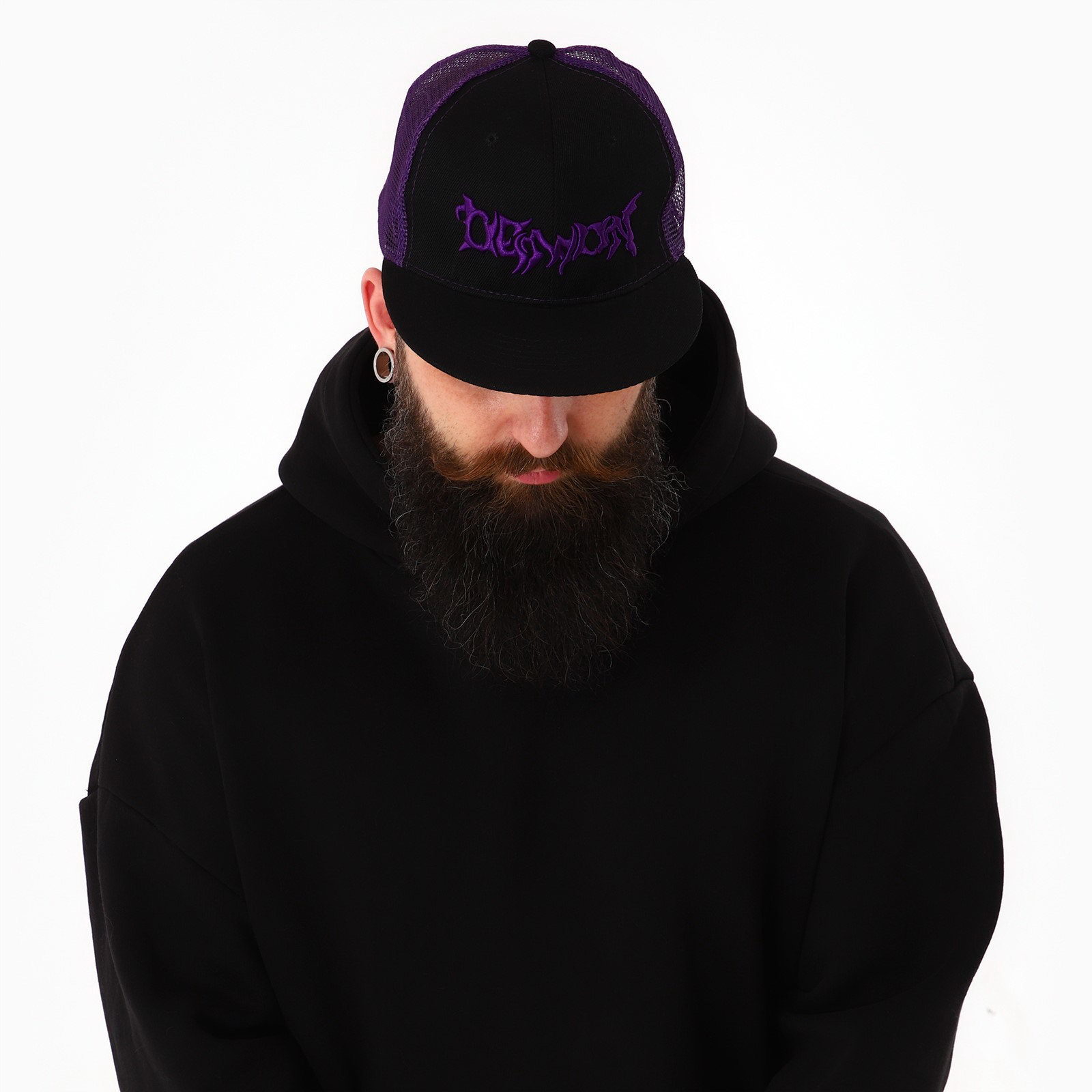 Кепка мужская с прямым козырьком Demon, чёрная, сетка, р-р 56, 24x18x10 см., Overhat, Китай