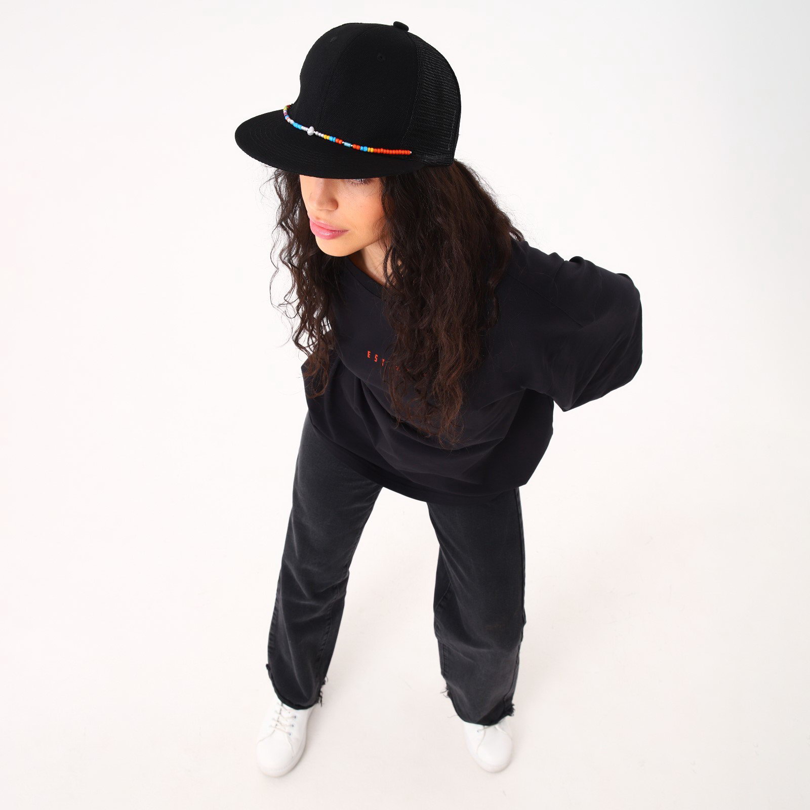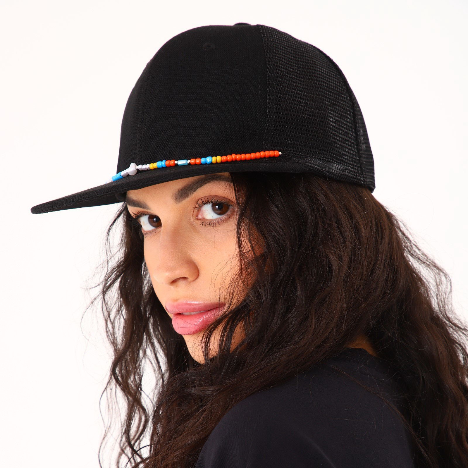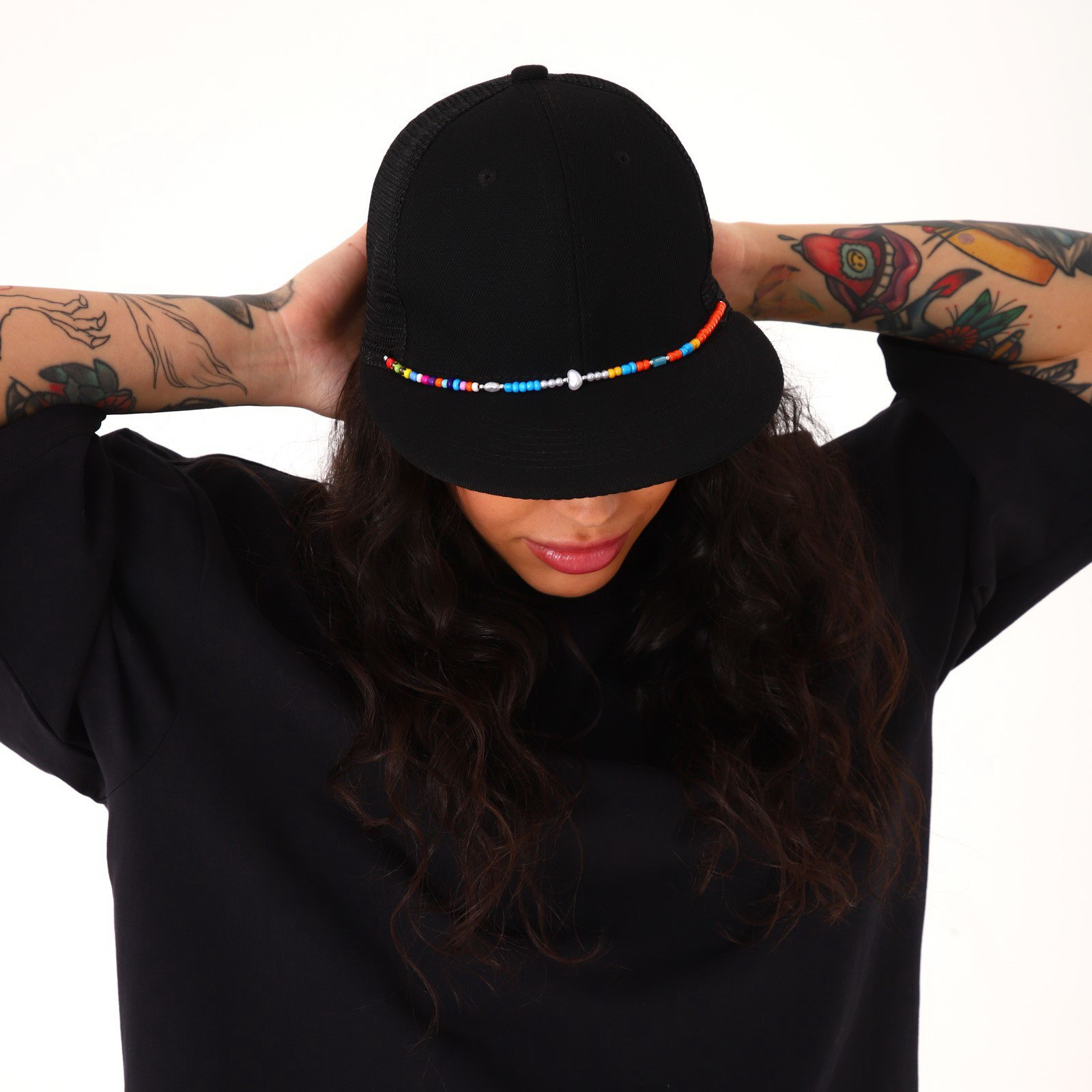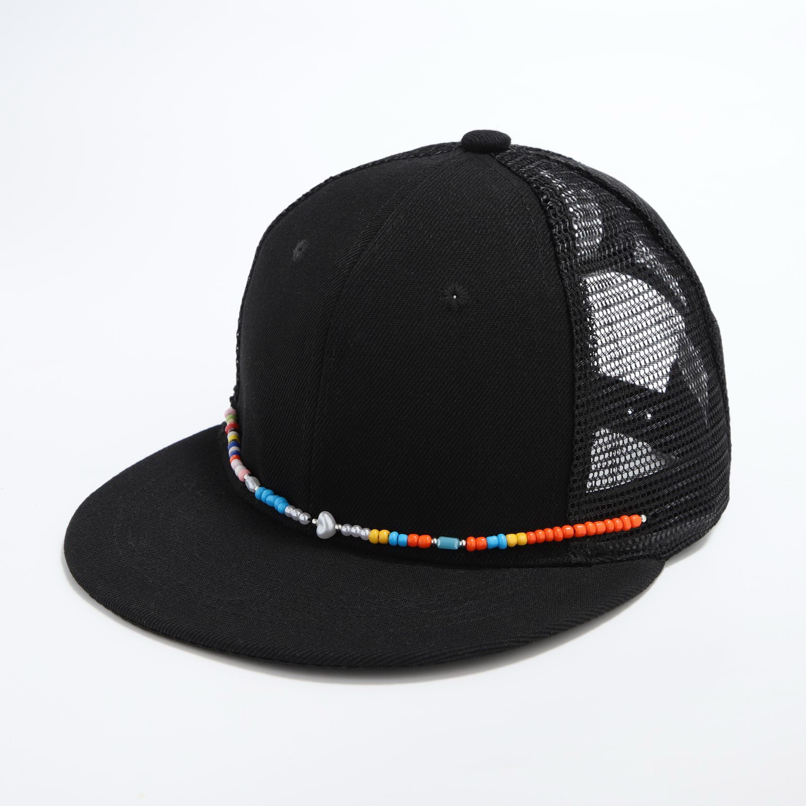 Кепка женская с прямым козырьком "Крутой", цвет чёрный, сетка, р-р 56, с бусами, 24x18x10 см., Overhat, Китай