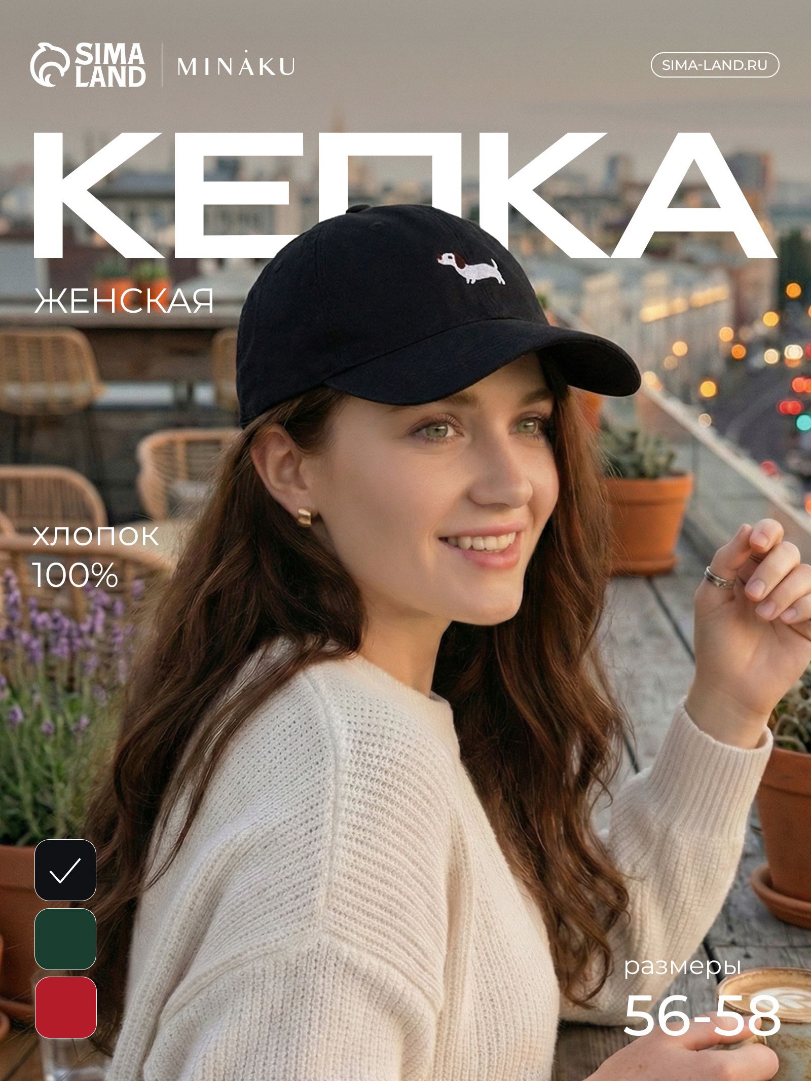 Кепка женская "Такса", размер 56-58, чёрная, деним, 20x25x11 см., MINAKU, Китай