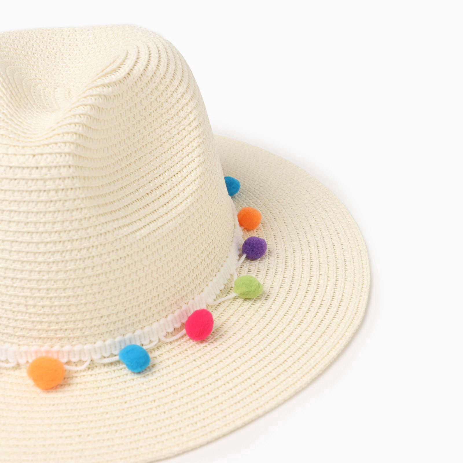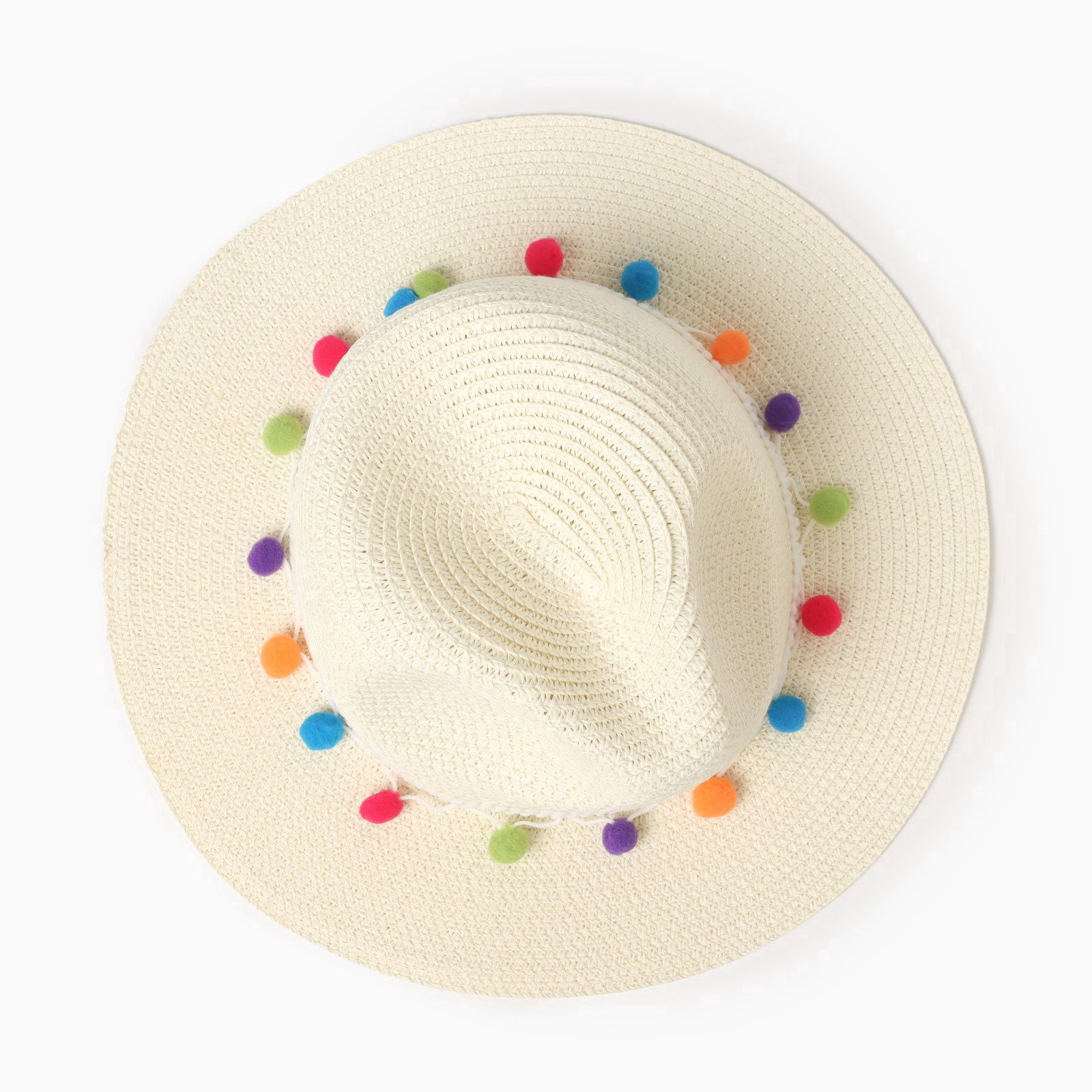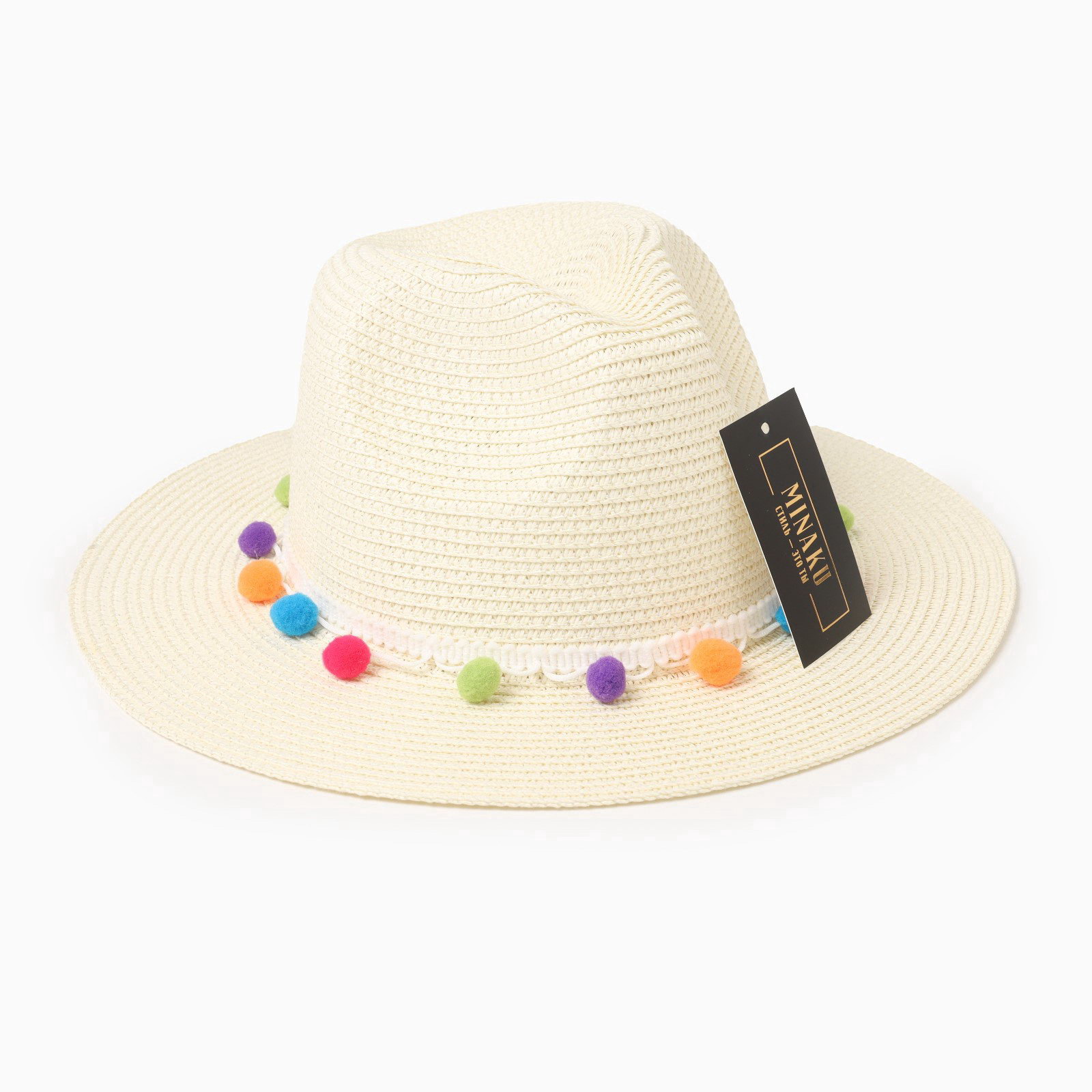 Шляпа женская с бомбошками, размер 54-56, белая, целлюлоза 100%, MINAKU, Китай