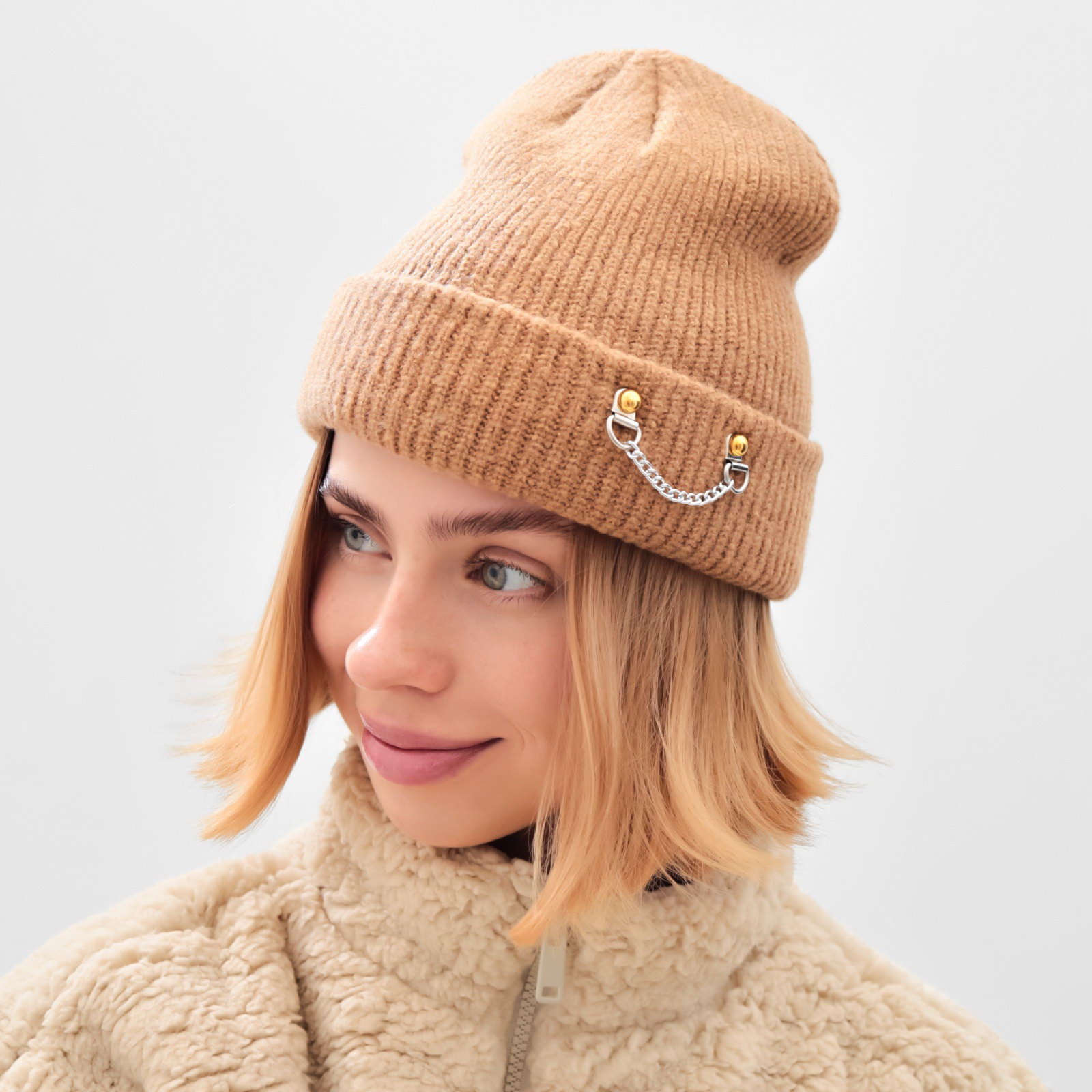 Шапка женская цвет бежевый, р-р 56-58, 10x10x10 см., MINAKU, Китай