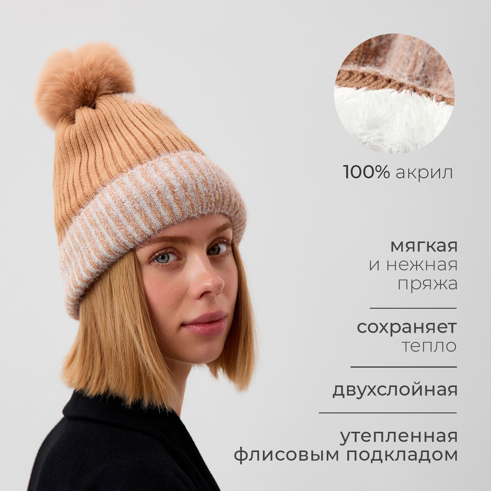 Размер: 56 см, 58 см Рекомендации по уходу: Деликатная стирка при 30 ℃, Деликатный режим отжима, Не отбеливать Сезон: Весна, Демисезон, Осень Размер упаковки: 18 x 3 x 25 см. Для кого: Для женщины Особенность: С подкладкой Материал подкладки: Искусственный мех Состав: Акрил Материал верха: Акрил Цвет: Бежевый Назначение: Повседневная Материал утеплителя: Искусственный мех Обхват головы, см: [56,58] tnved: 6505009000 Честный знак: Честный знак Тематика: Однотонная Фактура материала: В рубчик | ||