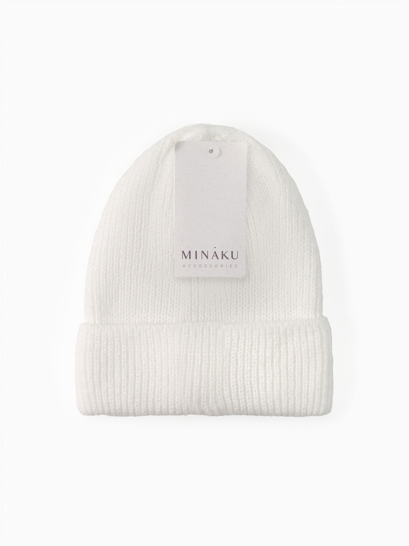 Шапка с подворотом женская размер 54-56, белая, 7x15x5 см., MINAKU, Китай