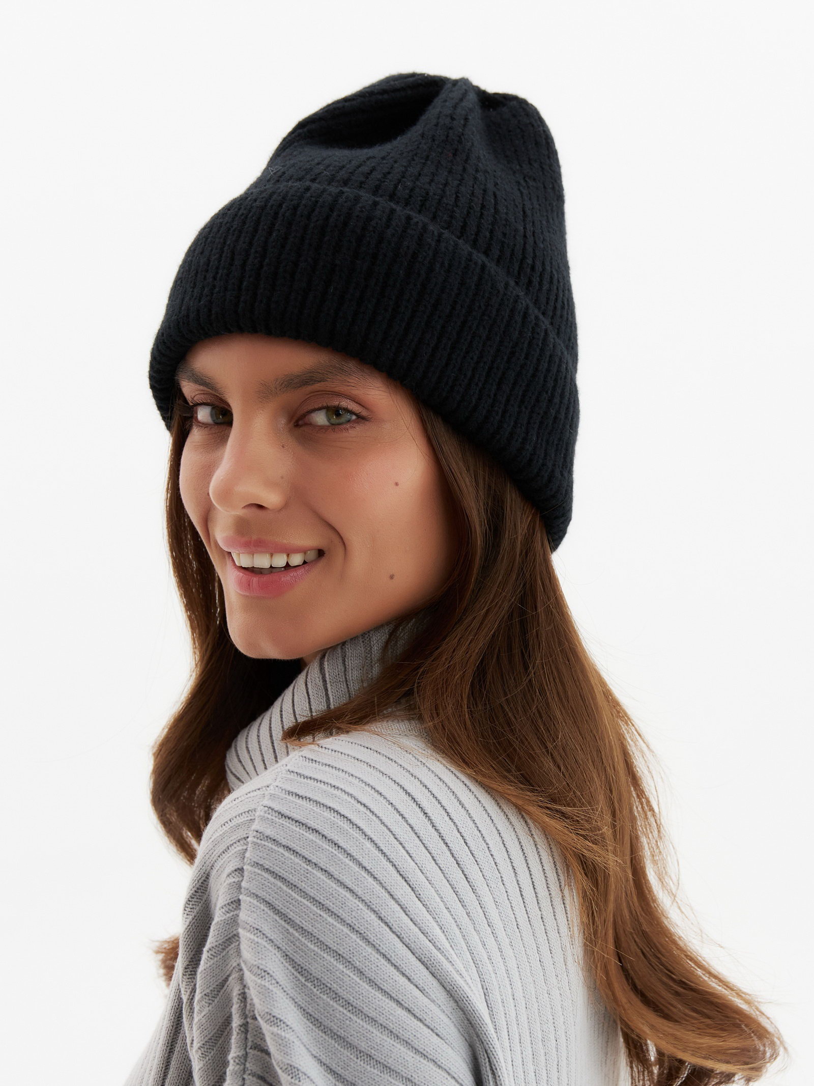 Шапка с подворотом женская размер 54-56, чёрная, 7x15x5 см., MINAKU, Китай