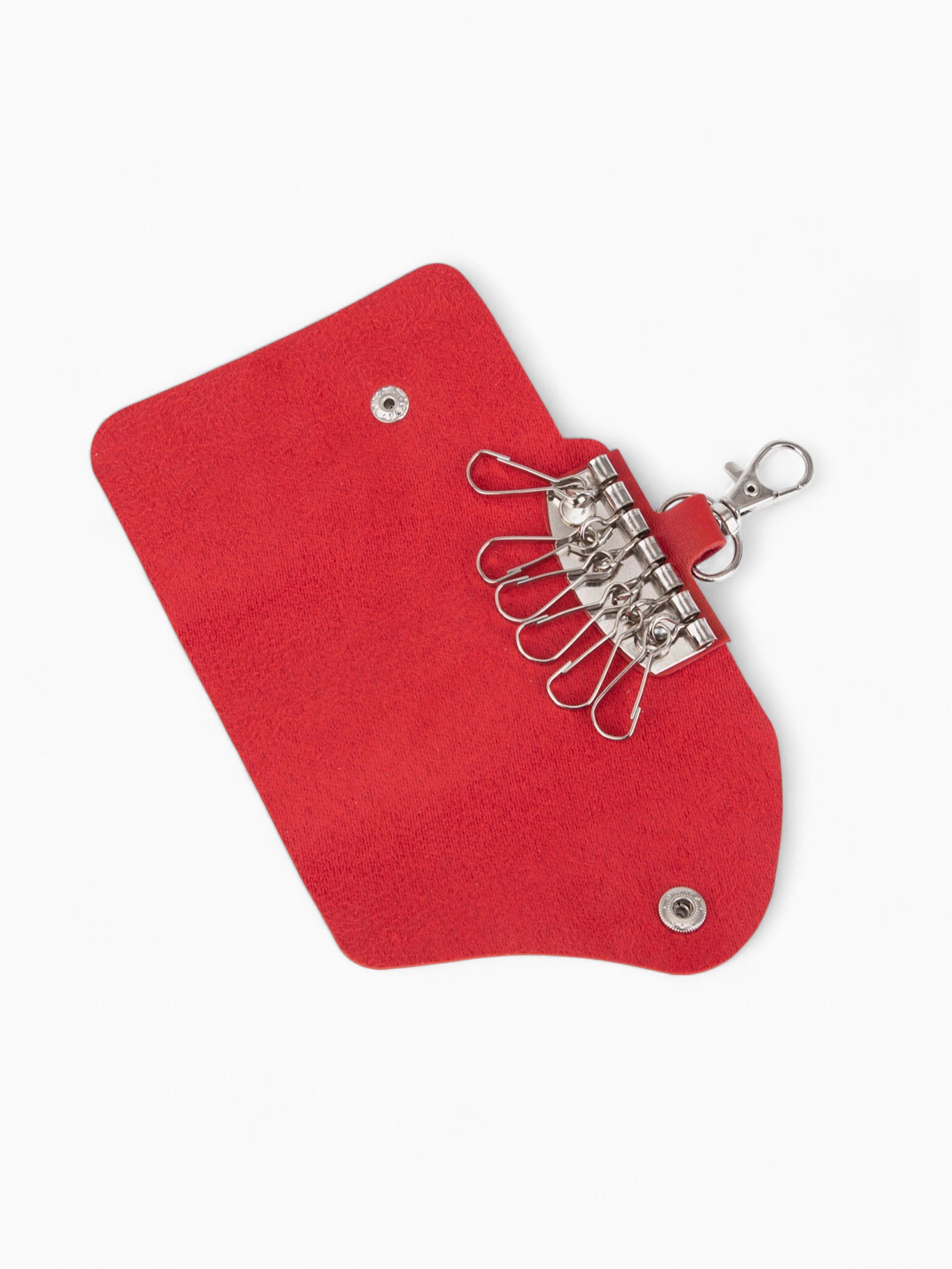 Ключница карманная на кнопке, 7 карабинов, размер 10.5x1.5x6 см, красная, 1.5x6x10.5 см., Китай
