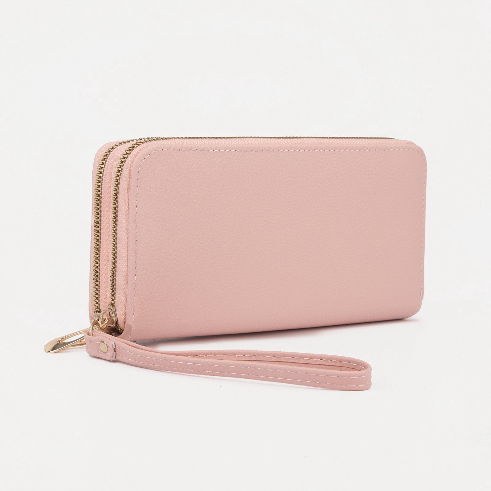 Кошелёк женский на молниях с ремешком, 20x5x10 см, однотонный, нежно-розовый, 5x20x10 см., Китай