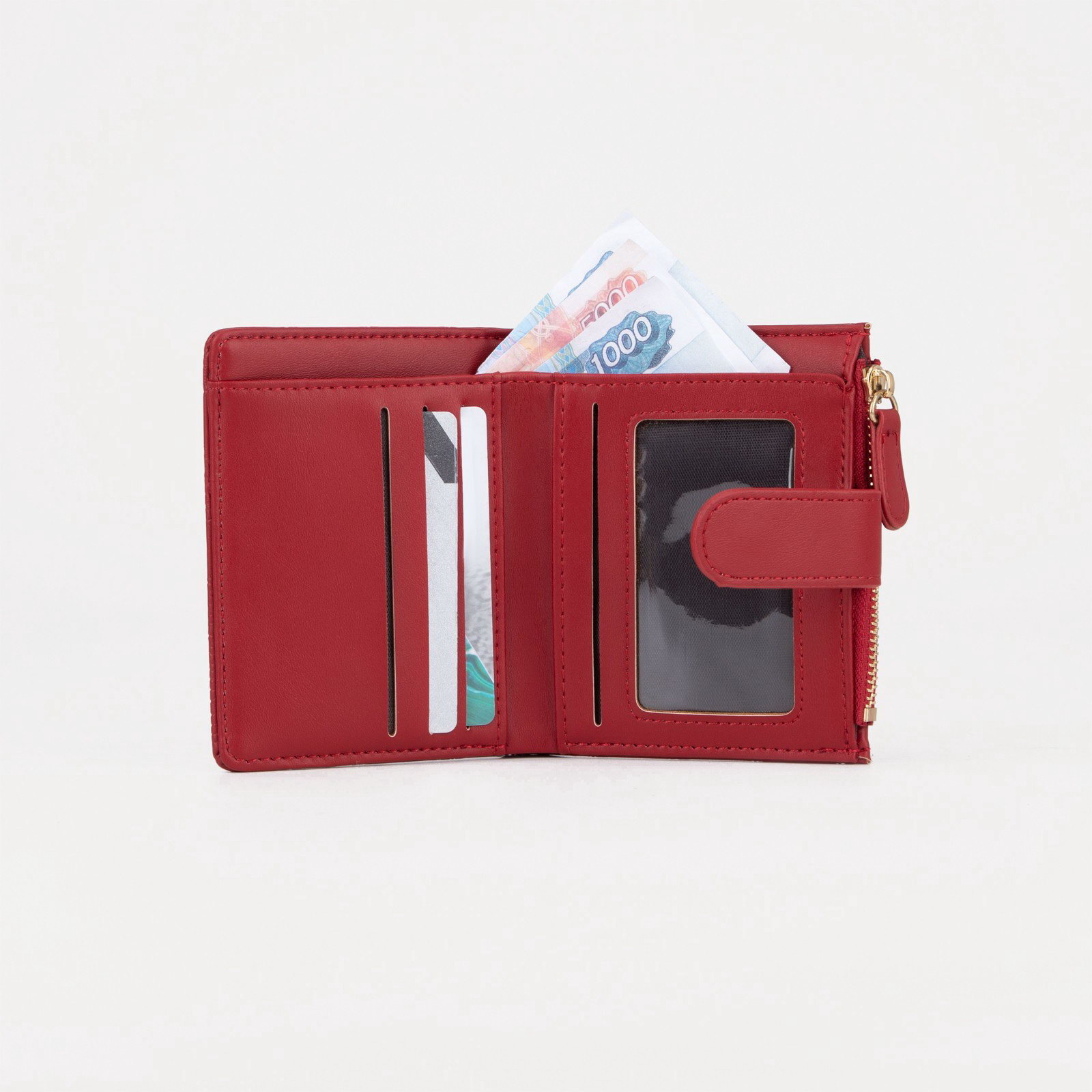 Кошелёк на кнопке, цвет красный, 1.5x11.5x9 см., Китай