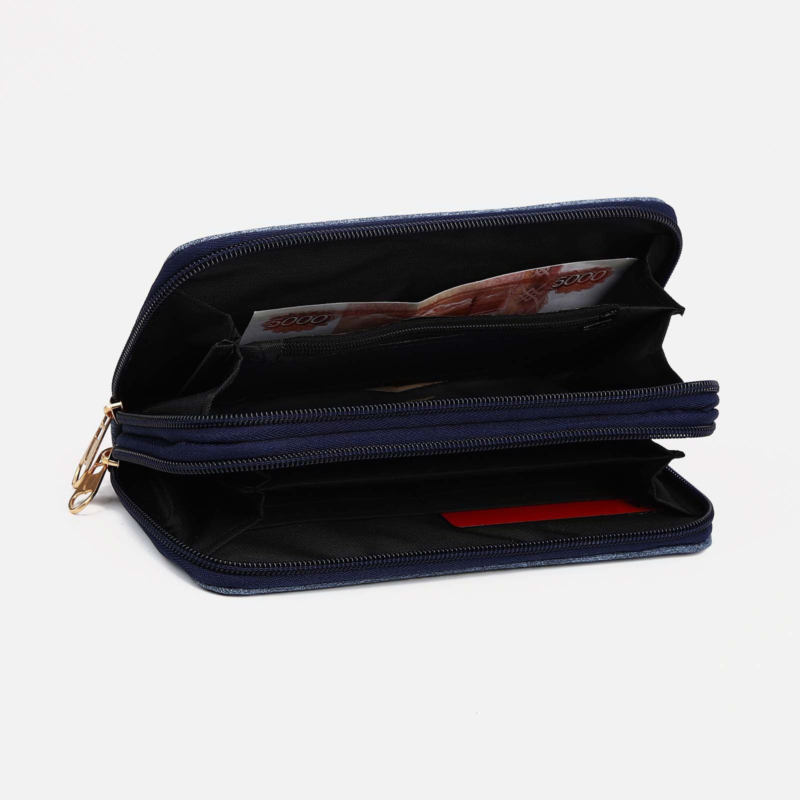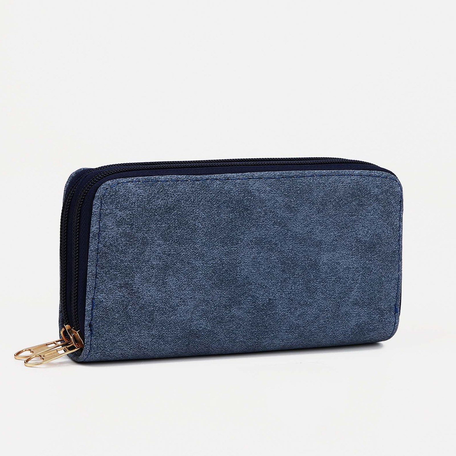 Кошелёк женский на молниях, отдел для купюр, для карт, для монет, цвет синий, 4x18.5x9.5 см., Китай