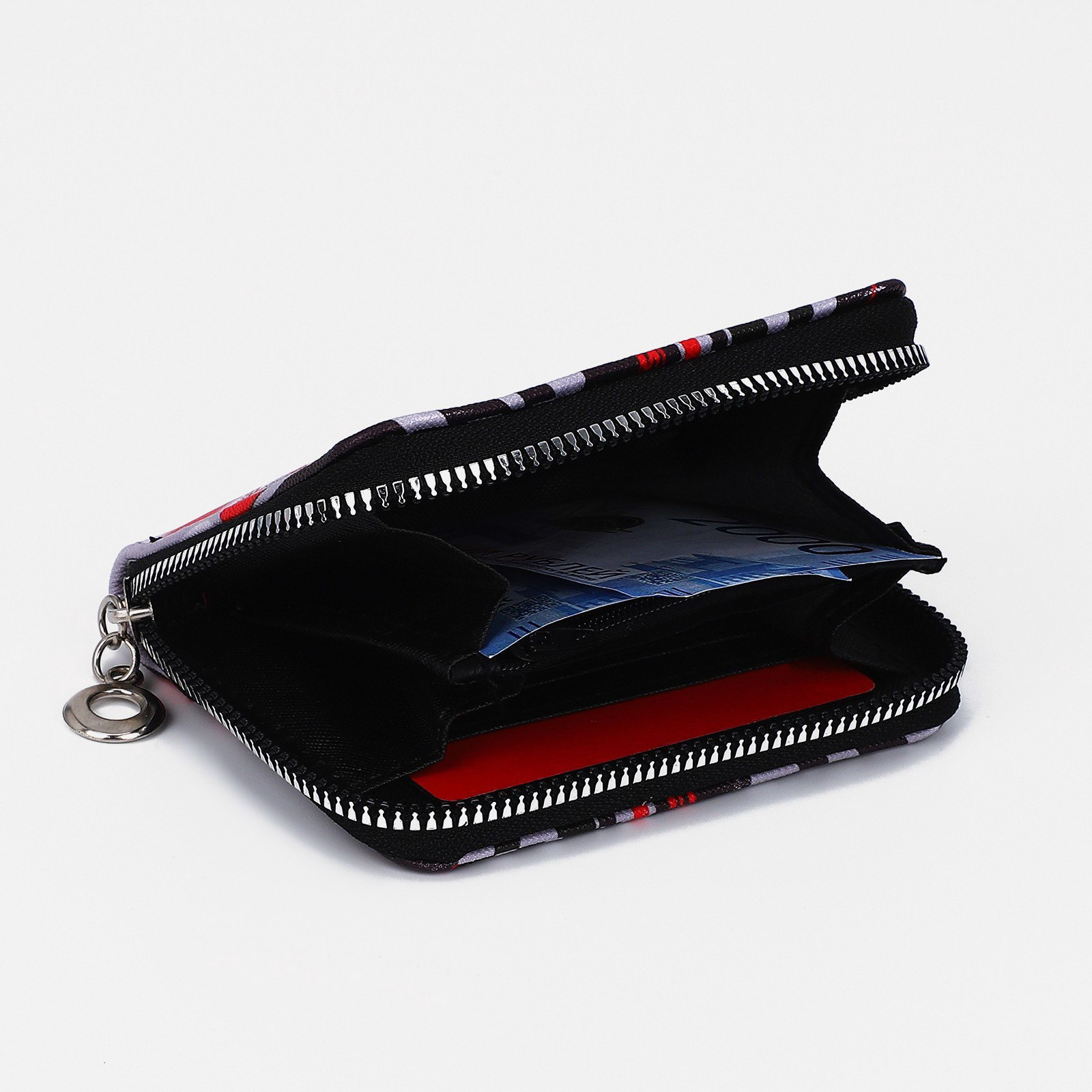 Кошелёк на молнии, отдел для карт, для монет, чёрный, красный, 2x8.5x11 см., Китай