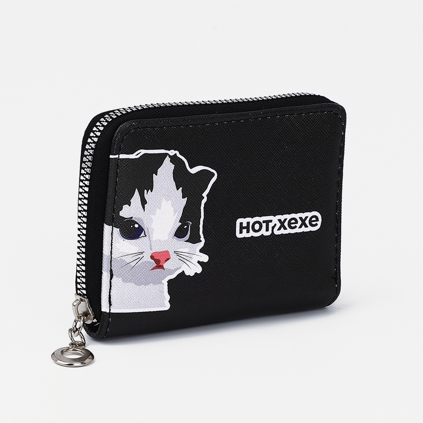 Кошелёк маленький "Хехе", на молнии, отдел для карт, для монет, чёрный, 2x11x8.5 см., Китай