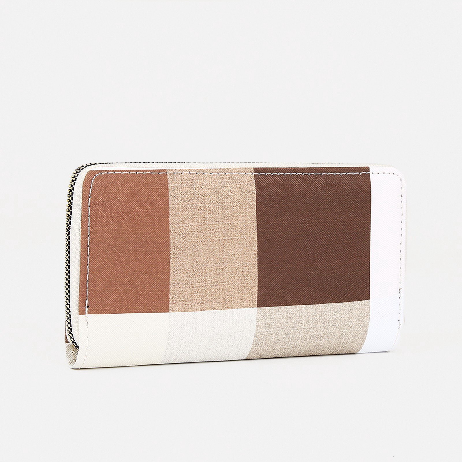 Кошелёк на молнии "Клетка", большой, 4 отделения, бежевый, 2x19.5x9.5 см., Китай