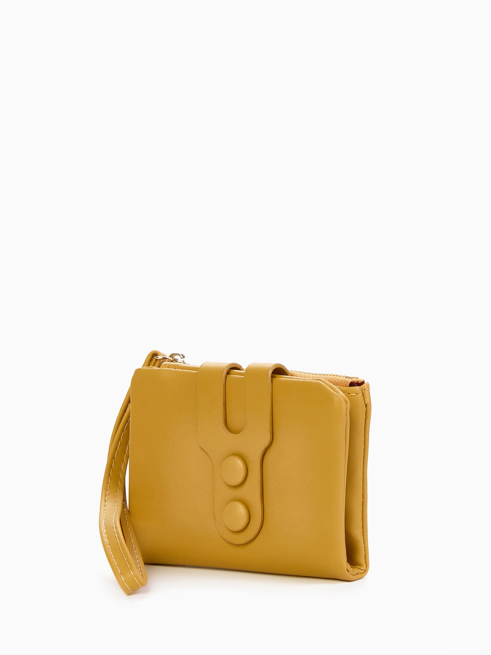 Кошелёк женский на кнопке, 11.5x2.5x9 см, однотонный, жёлтый, 2.5x9x11.5 см., Китай