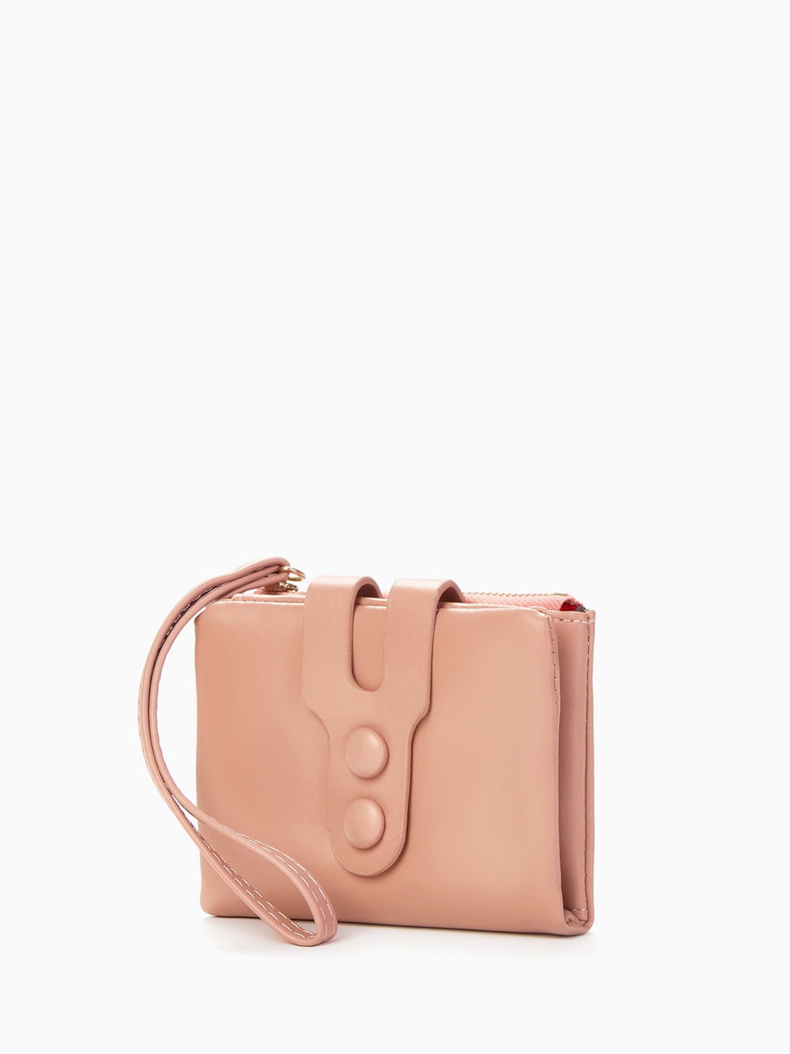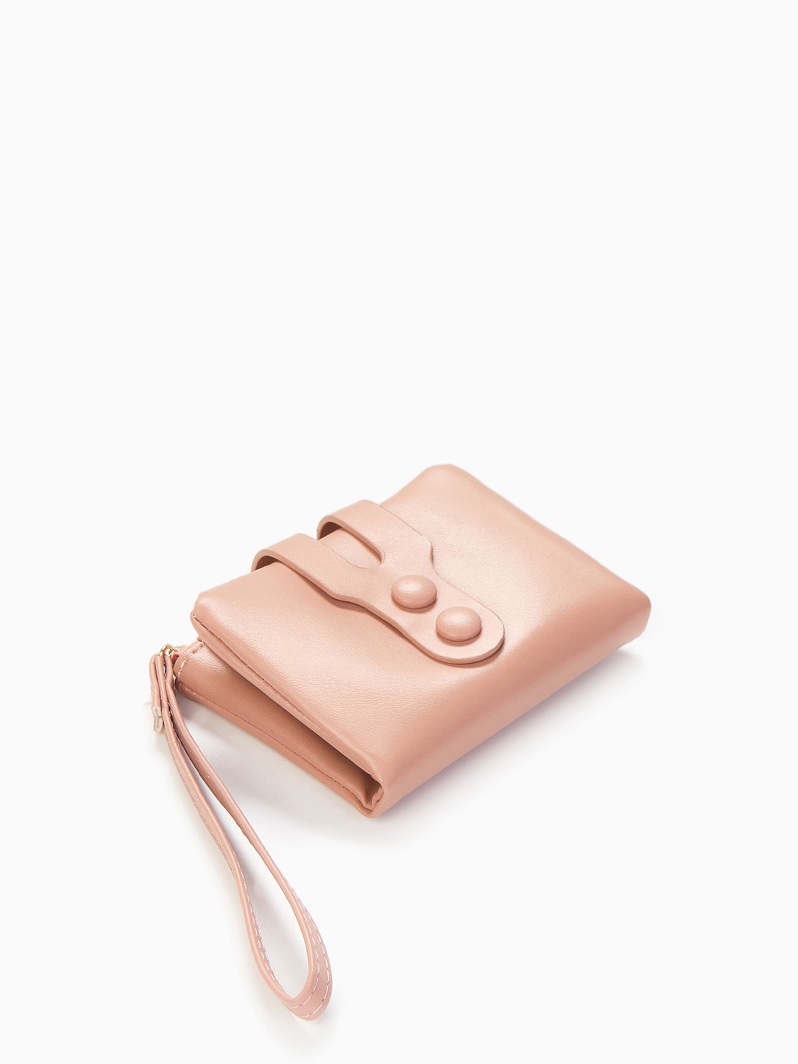 Кошелёк женский на кнопке, 11.5x2.5x9 см, однотонный, розовый, 2.5x9x11.5 см., Китай
