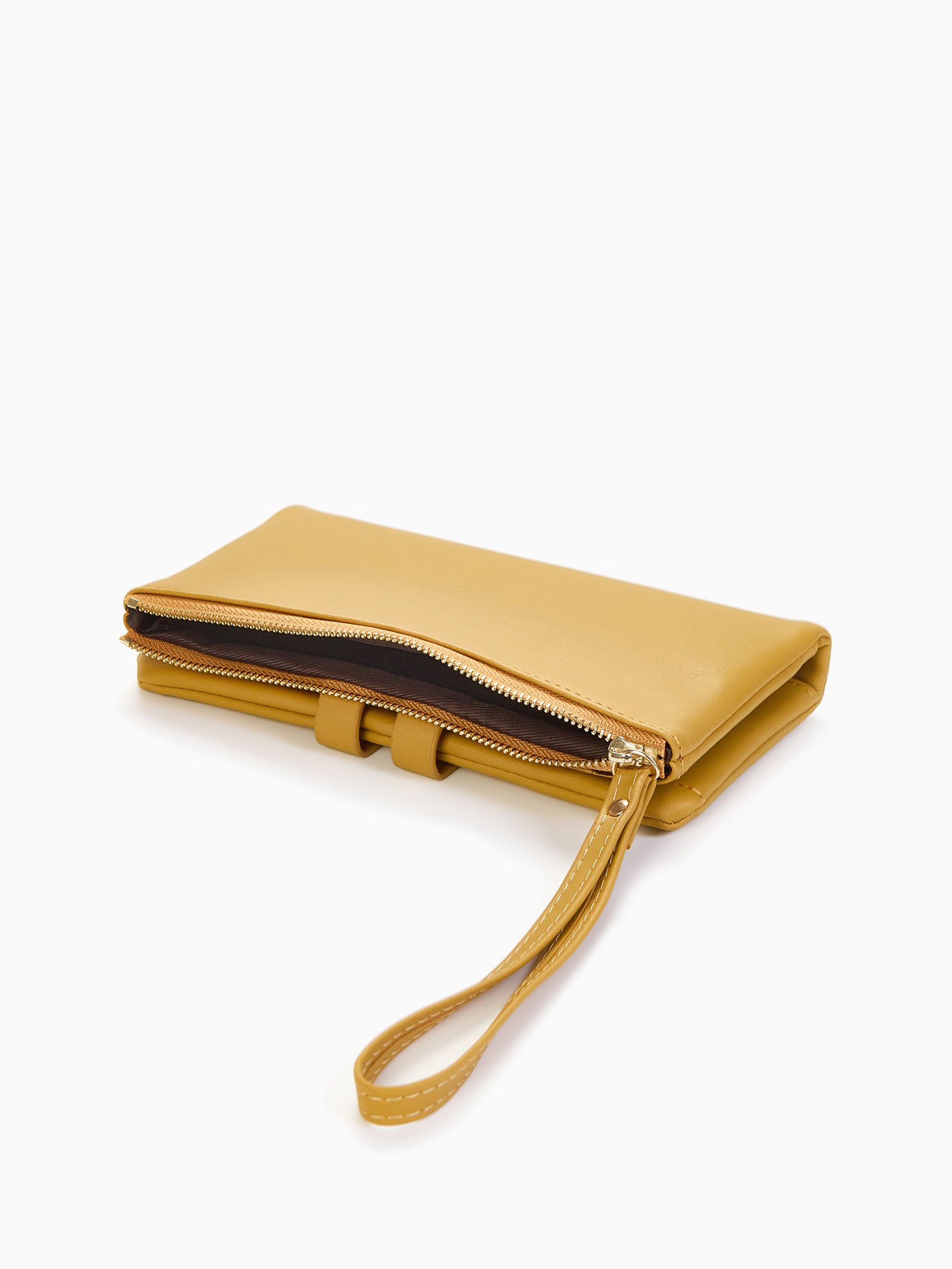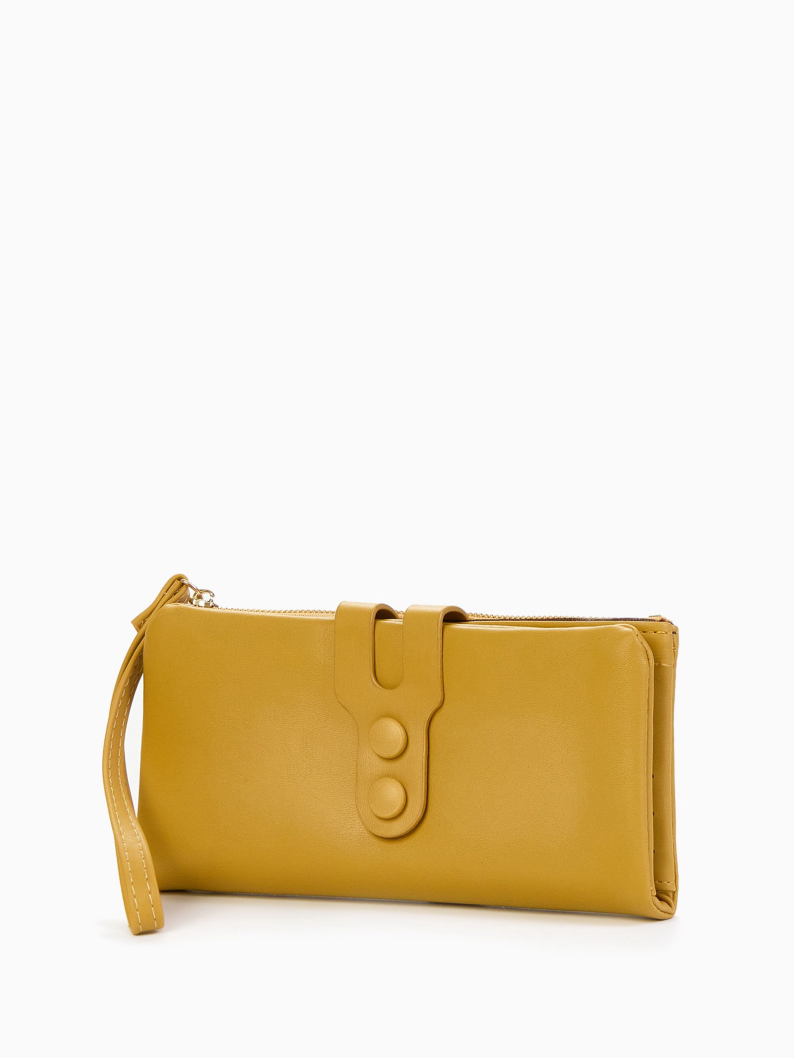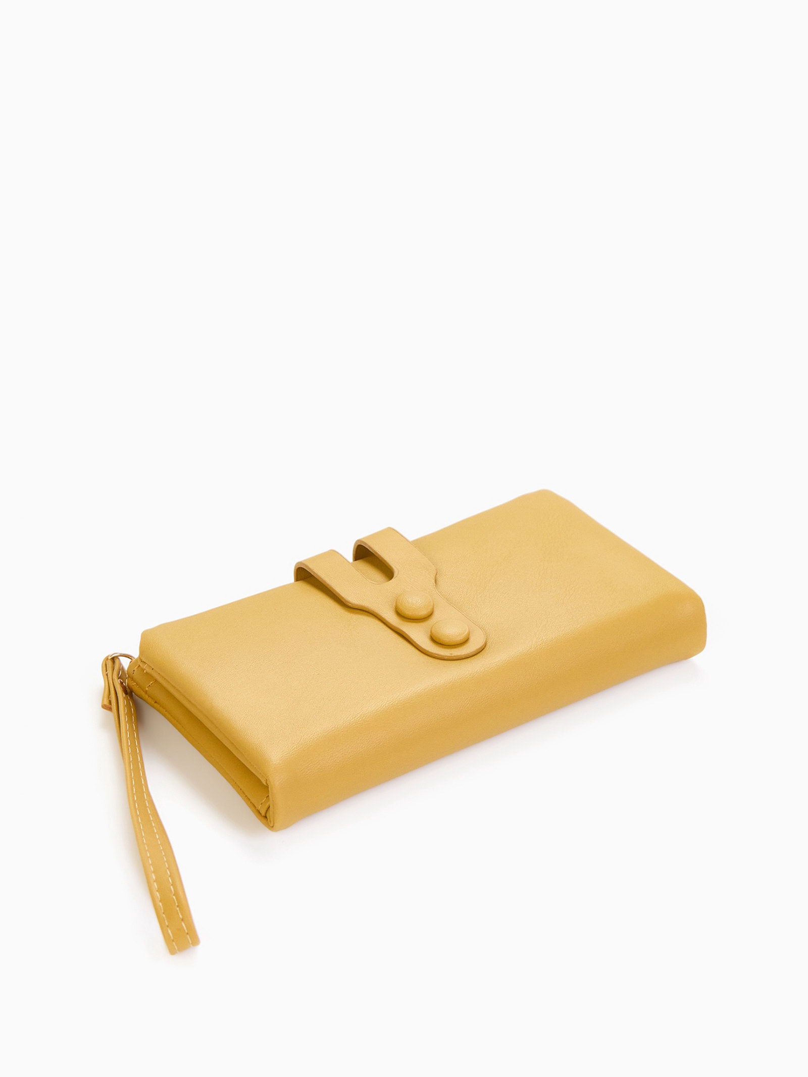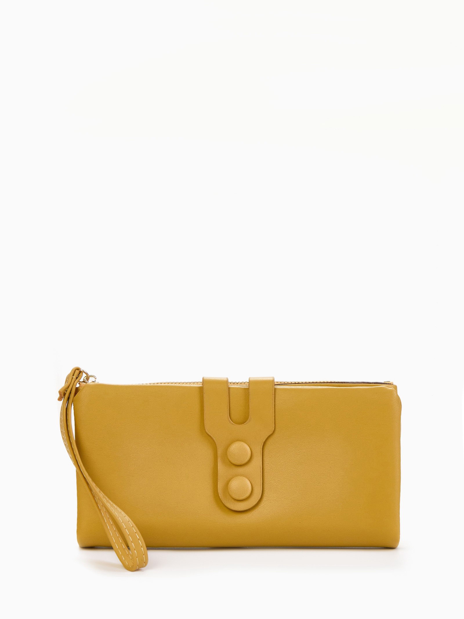 Кошелёк женский на кнопке, 19x2x9.5 см, однотонный, жёлтый, 2x19x9.5 см., Китай