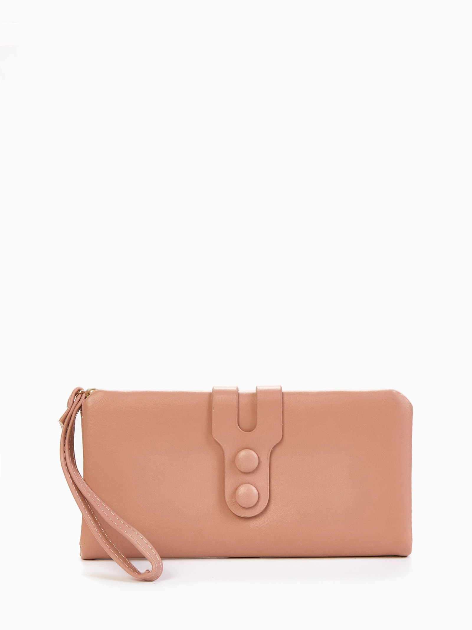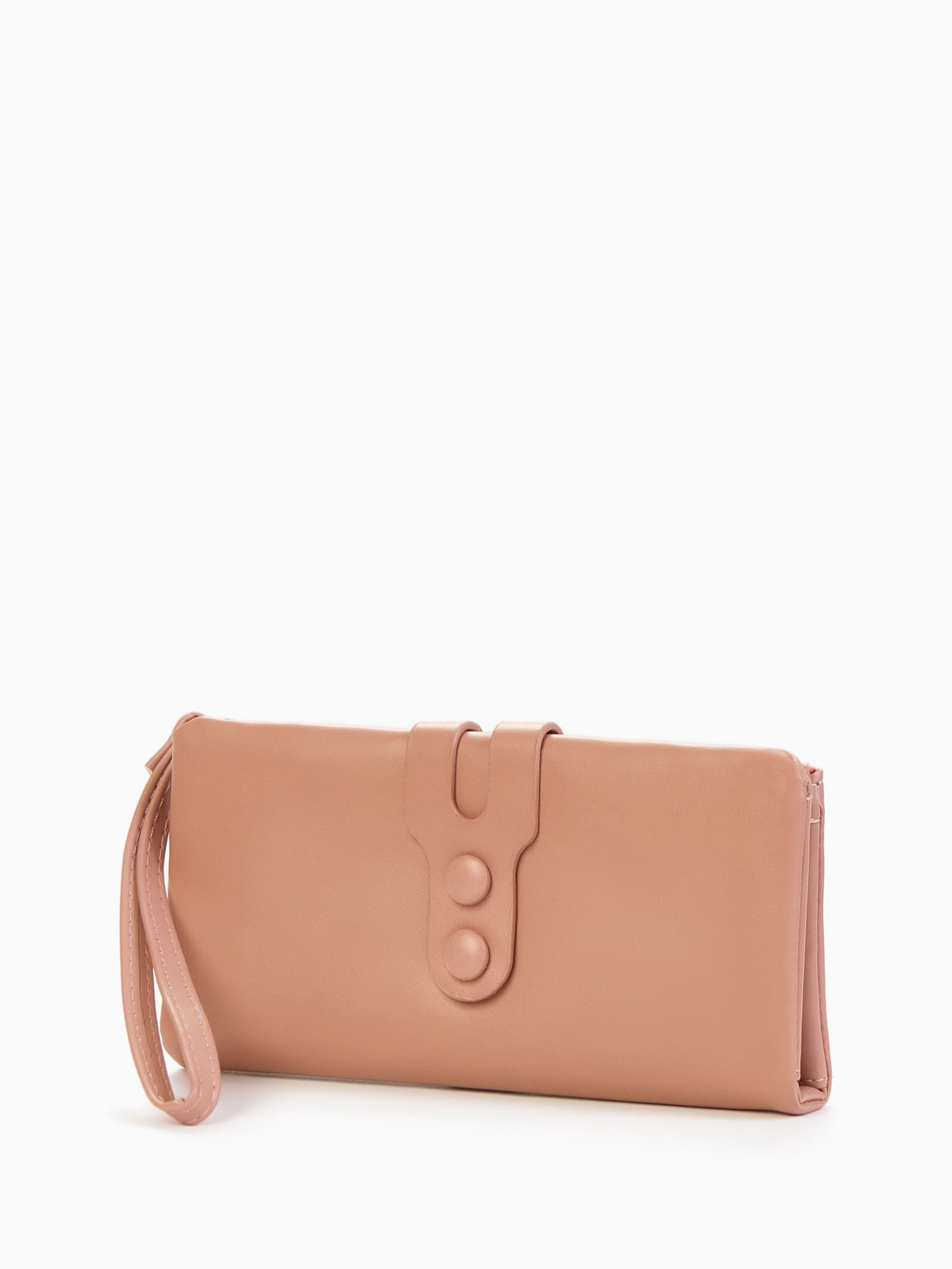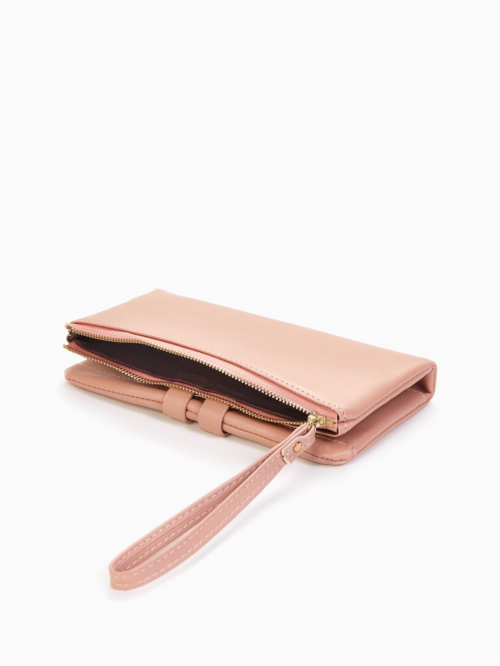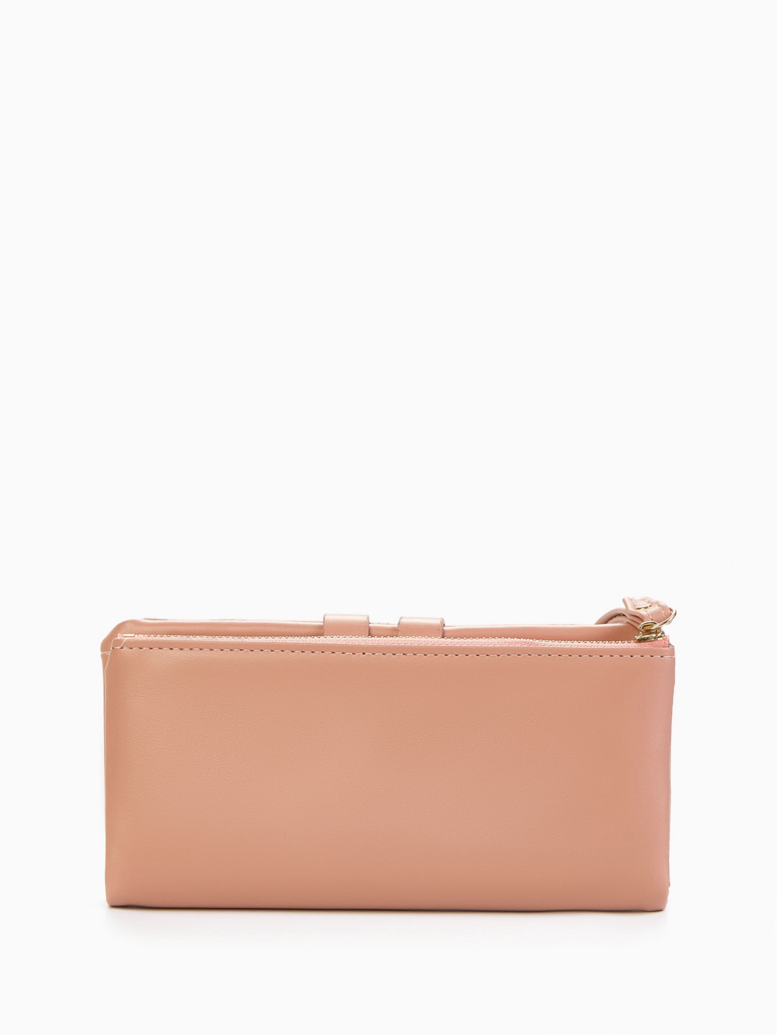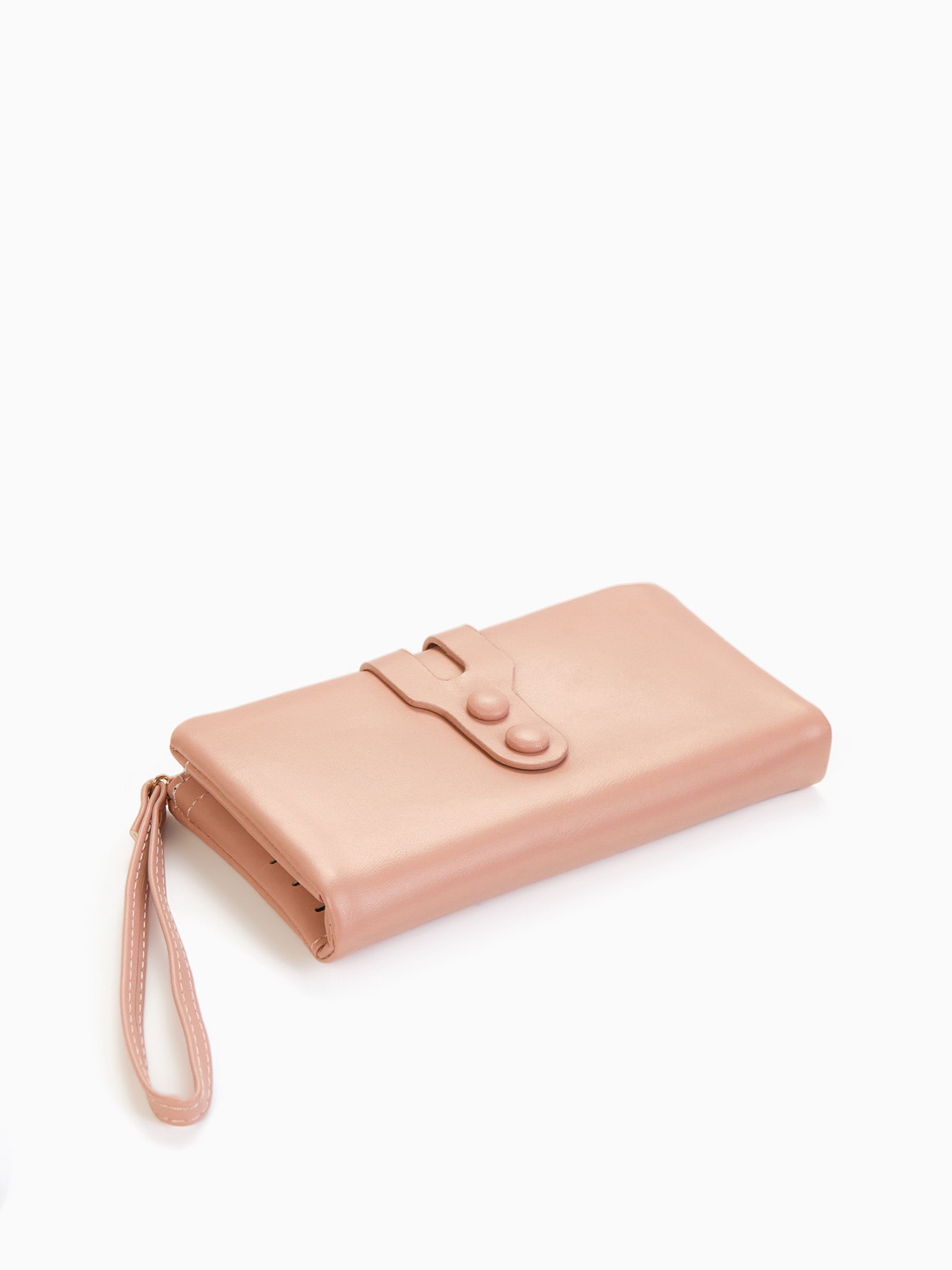 Кошелёк женский на кнопке, 19x2x9.5 см, однотонный, розовый, 2x19x9.5 см., Китай