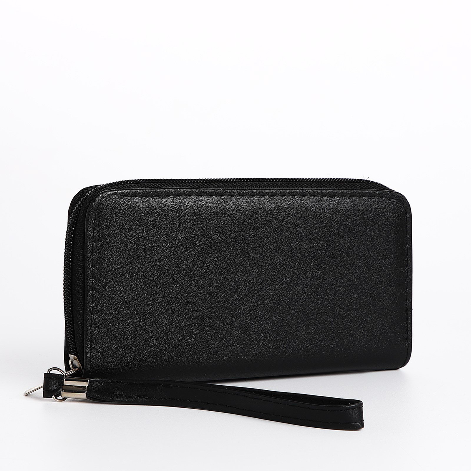 Кошелёк женский на молнии с ремешком, 19.5x2.5x10 см, однотонный, чёрный, 2.5x19.5x10 см., Китай