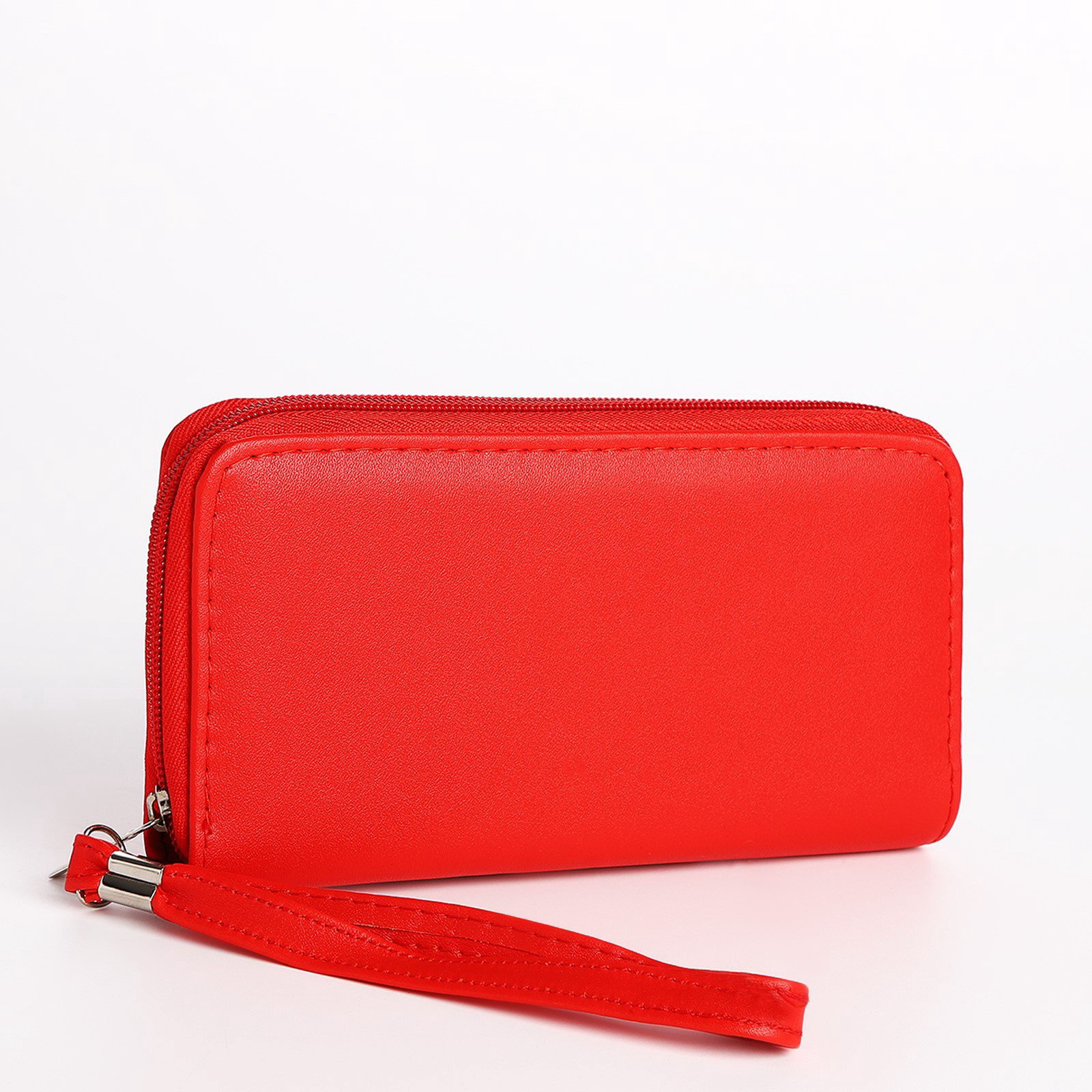 Кошелёк женский на молнии с ремешком, 19.5x2.5x10 см, однотонный, красный, 2.5x19.5x10 см., Китай