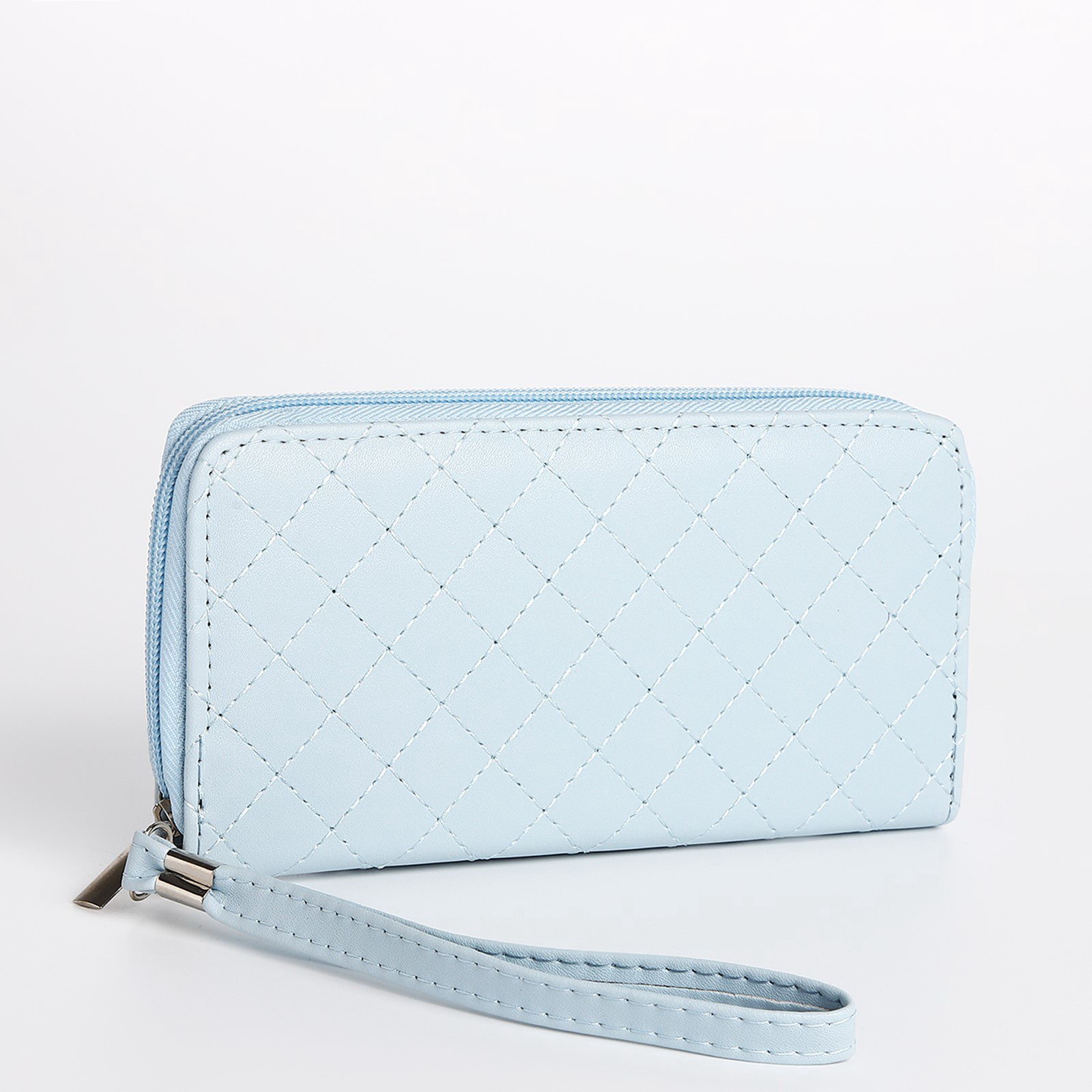 Кошелёк женский на молнии с ремешком, 19.5x2.5x10 см, голубой, 2.5x19.5x10 см., Китай