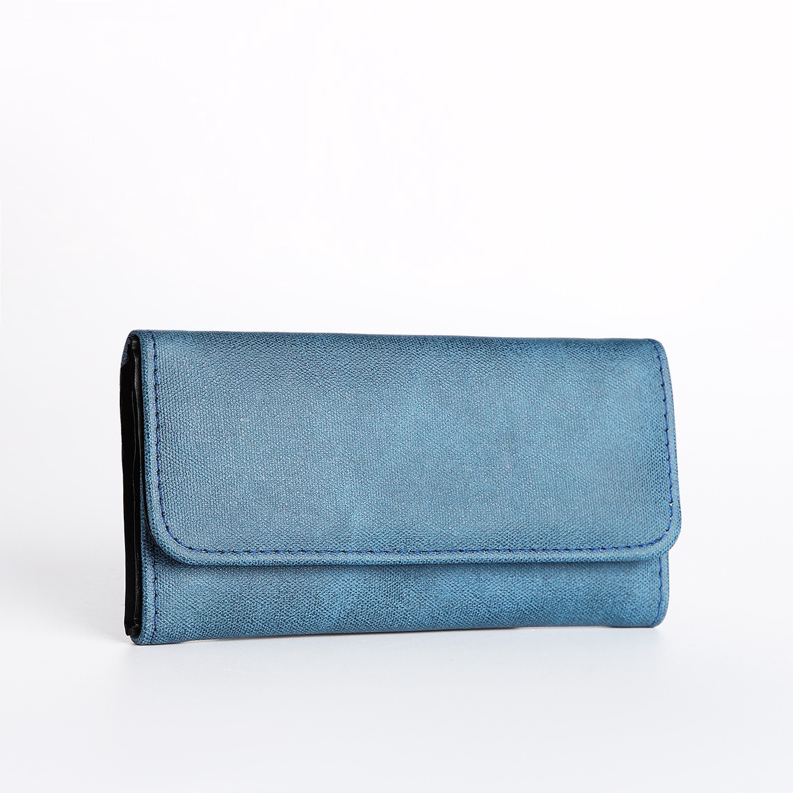 Кошелёк женский на кнопке, 18.5x2.5x9 см, синий, 2.5x18.5x9 см., Китай