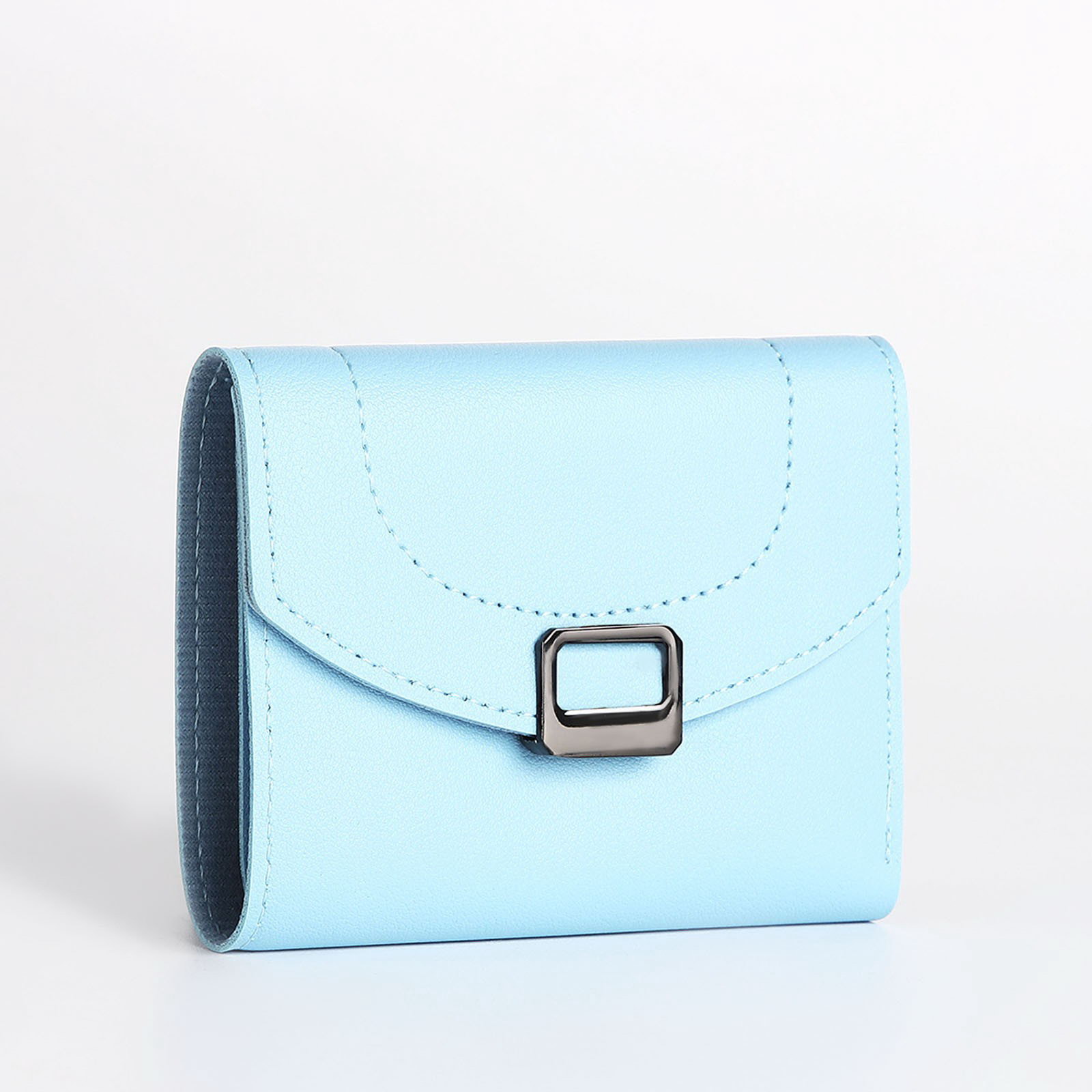 Кошелёк женский на кнопке, 12x3x9 см, однотонный, голубой, 3x12x9 см., Китай