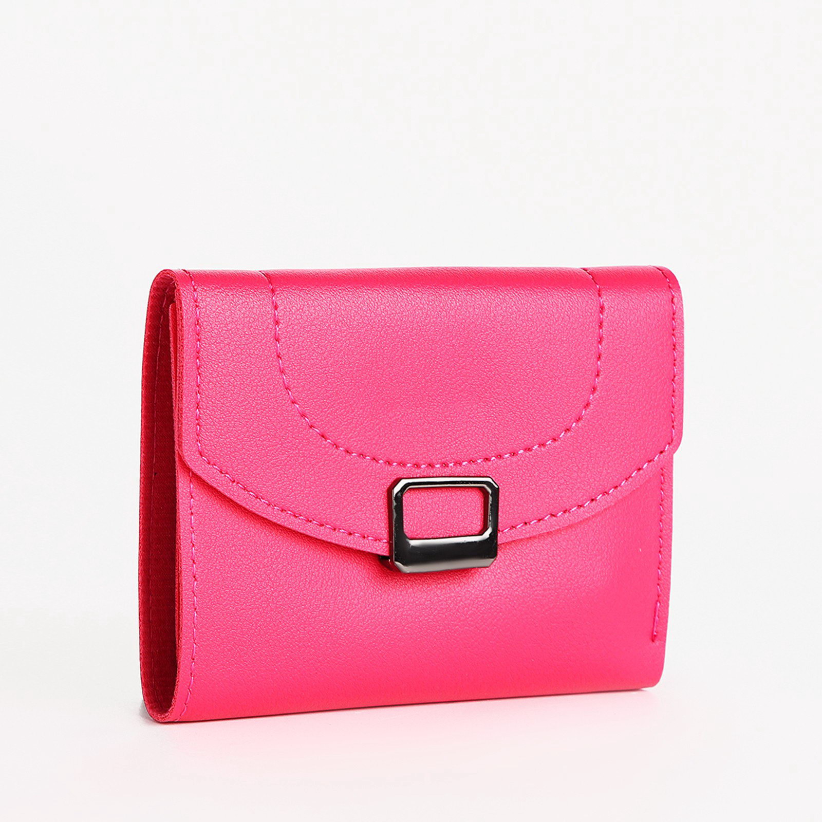 Кошелёк женский на кнопке, 12x3x9 см, однотонный, розовый, 3x12x9 см., Китай