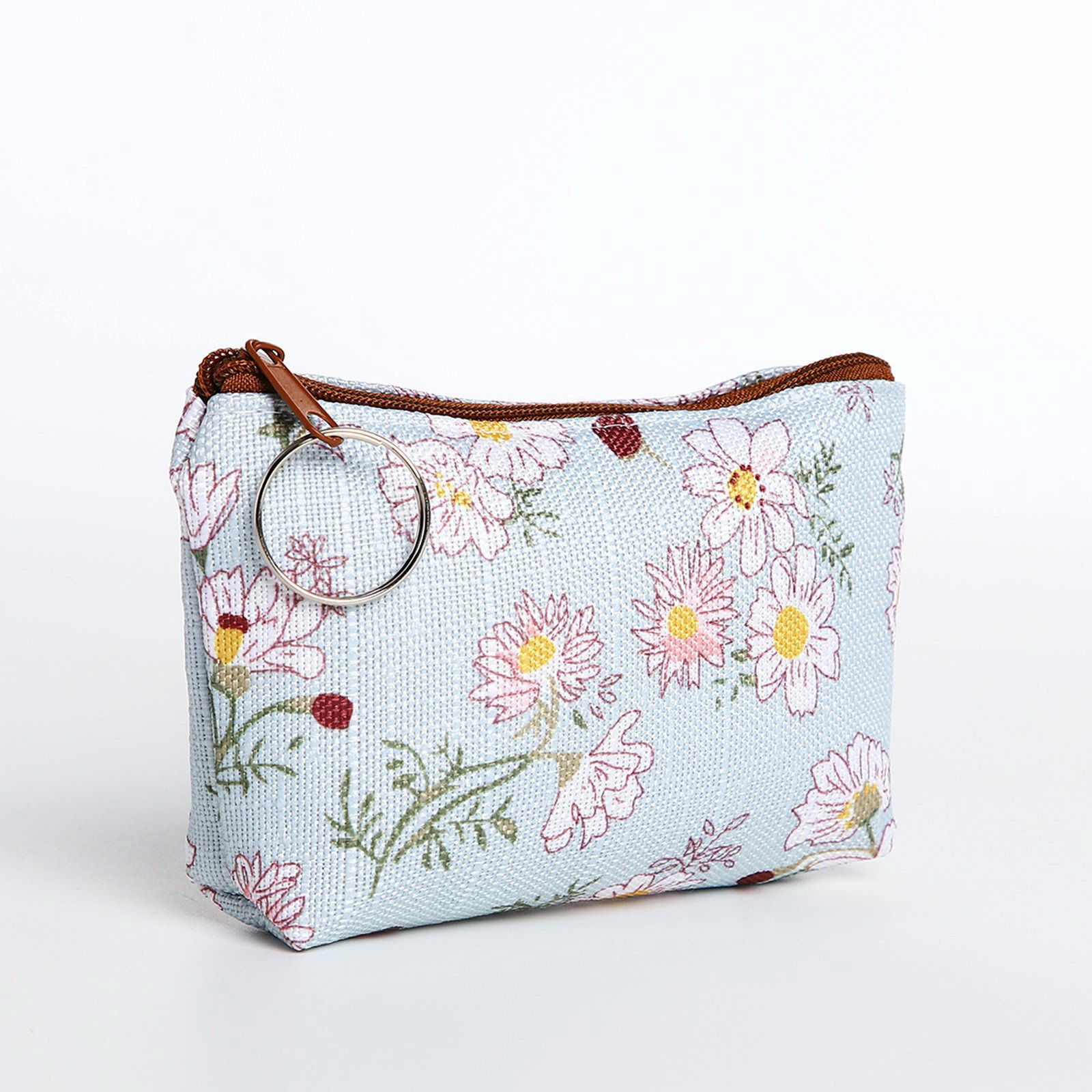 Кошелёк-монетница на молнии 12x1x9 см, с цветочным принтом, МИКС, 1x12x9 см., Китай
