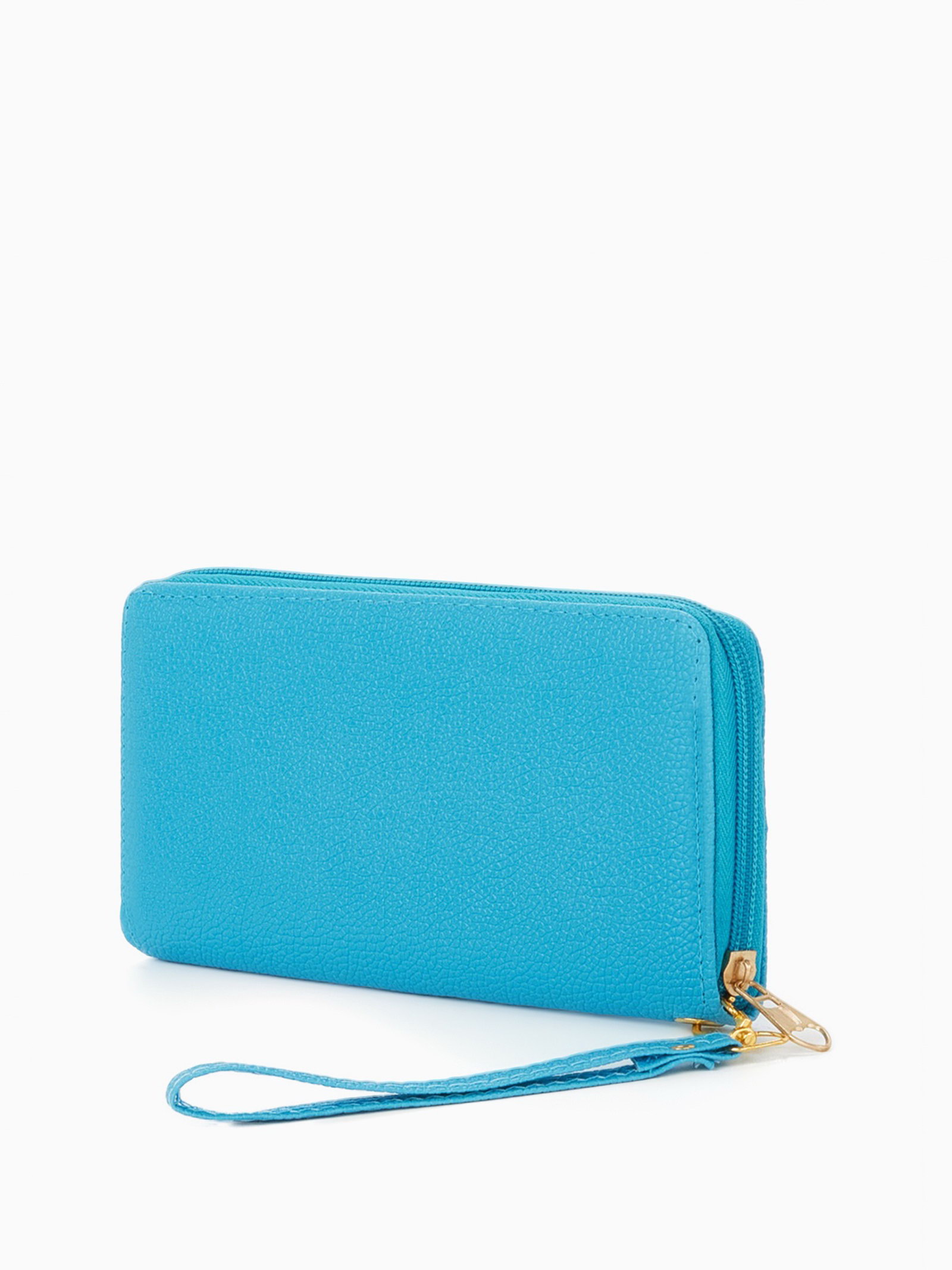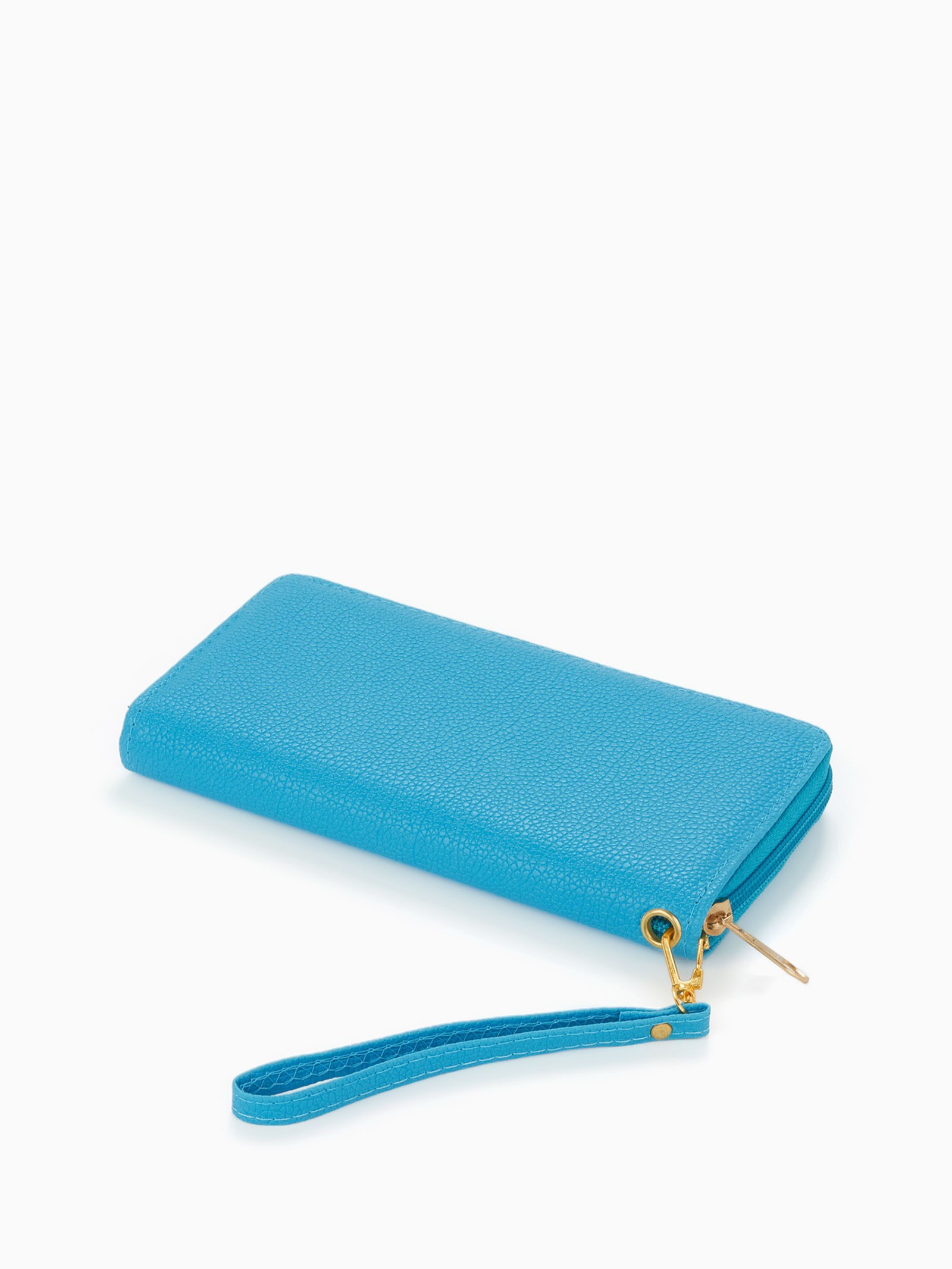 Кошелёк женский на молнии с ручкой, 19x2x10 см, ярко-голубой, 2x19x10 см., Китай
