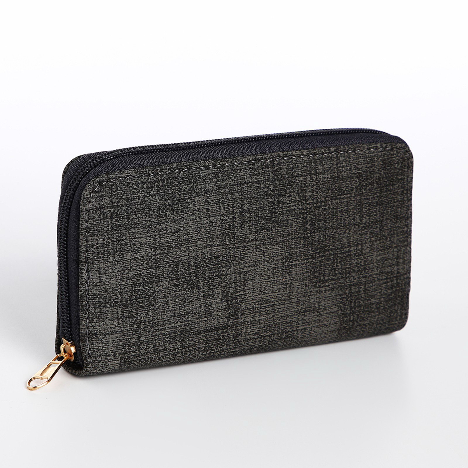 Кошелёк женский на молнии, 19.5x2.5x10 см, тёмно-серый, 2.5x19x10 см., Китай