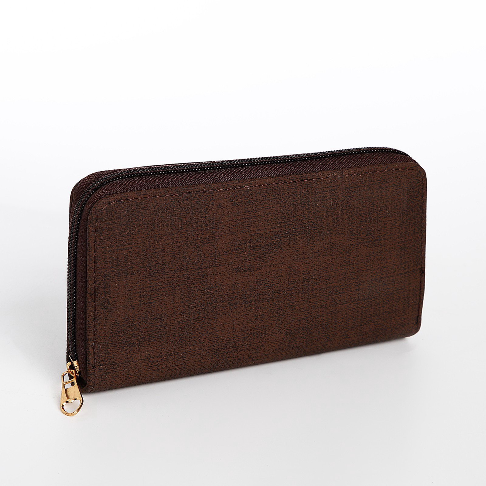 Кошелёк женский на молнии, 19.5x2.5x10 см, тёмно-коричневый, 2.5x19x10 см., Китай