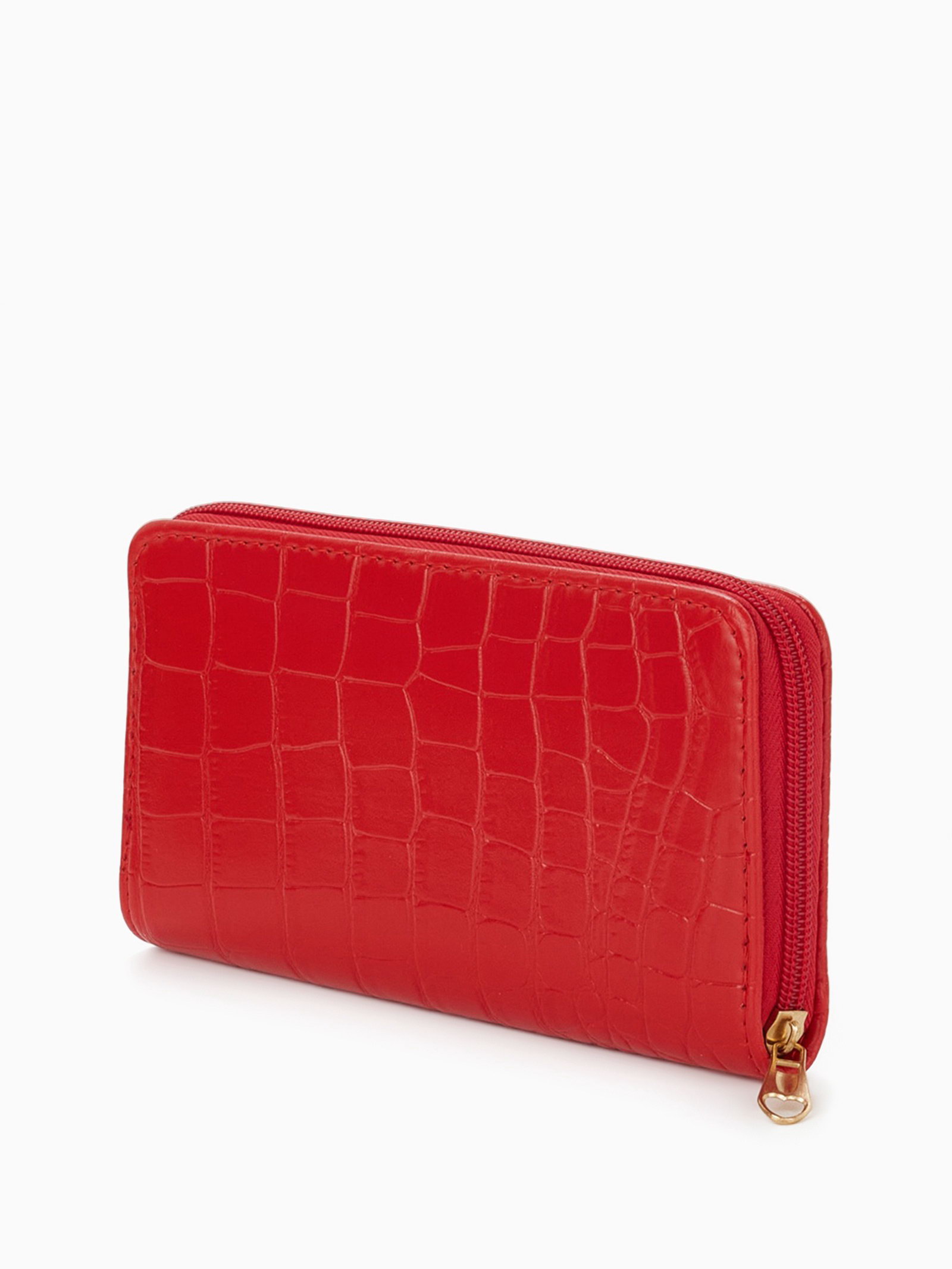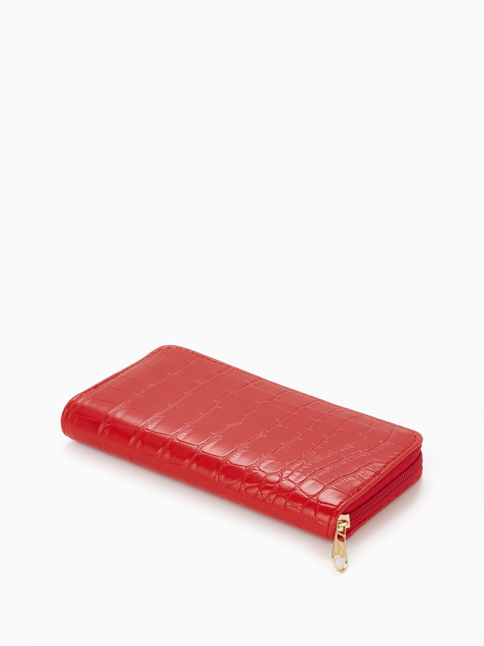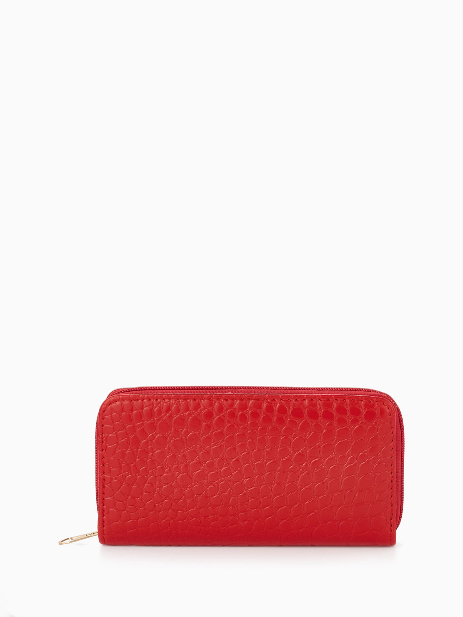 Кошелёк женский на молнии, 19.5x2.5x10 см, с текстурой, красный, 2.5x19x10 см., Китай