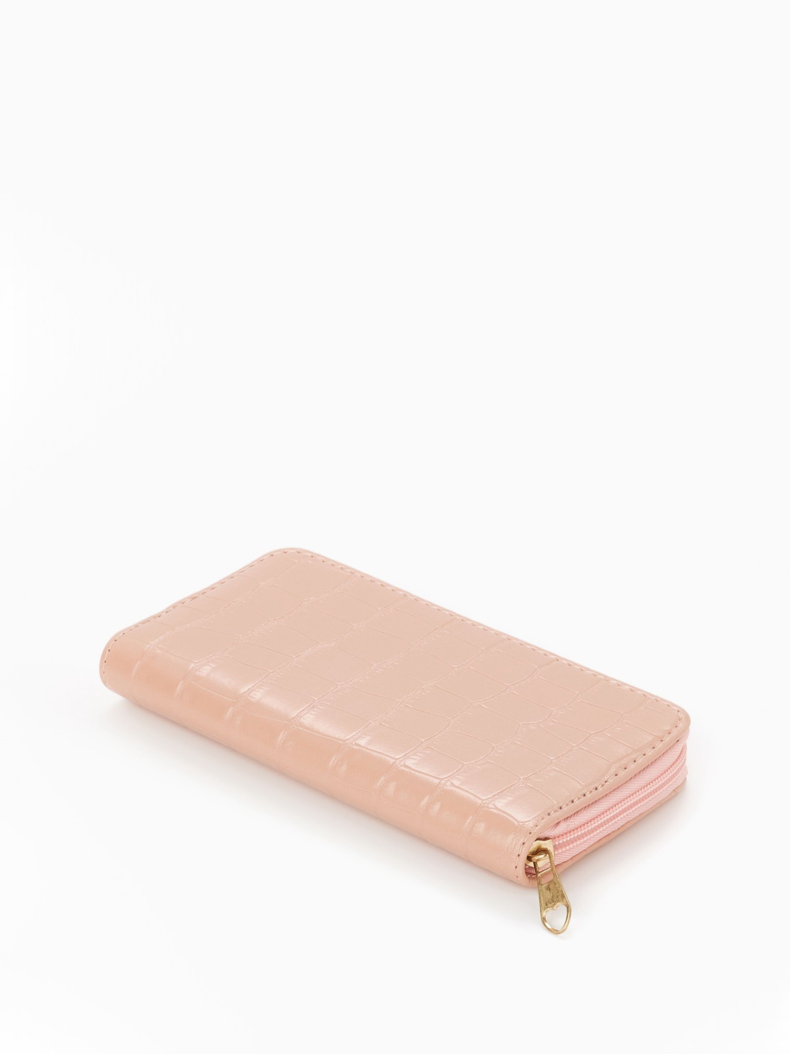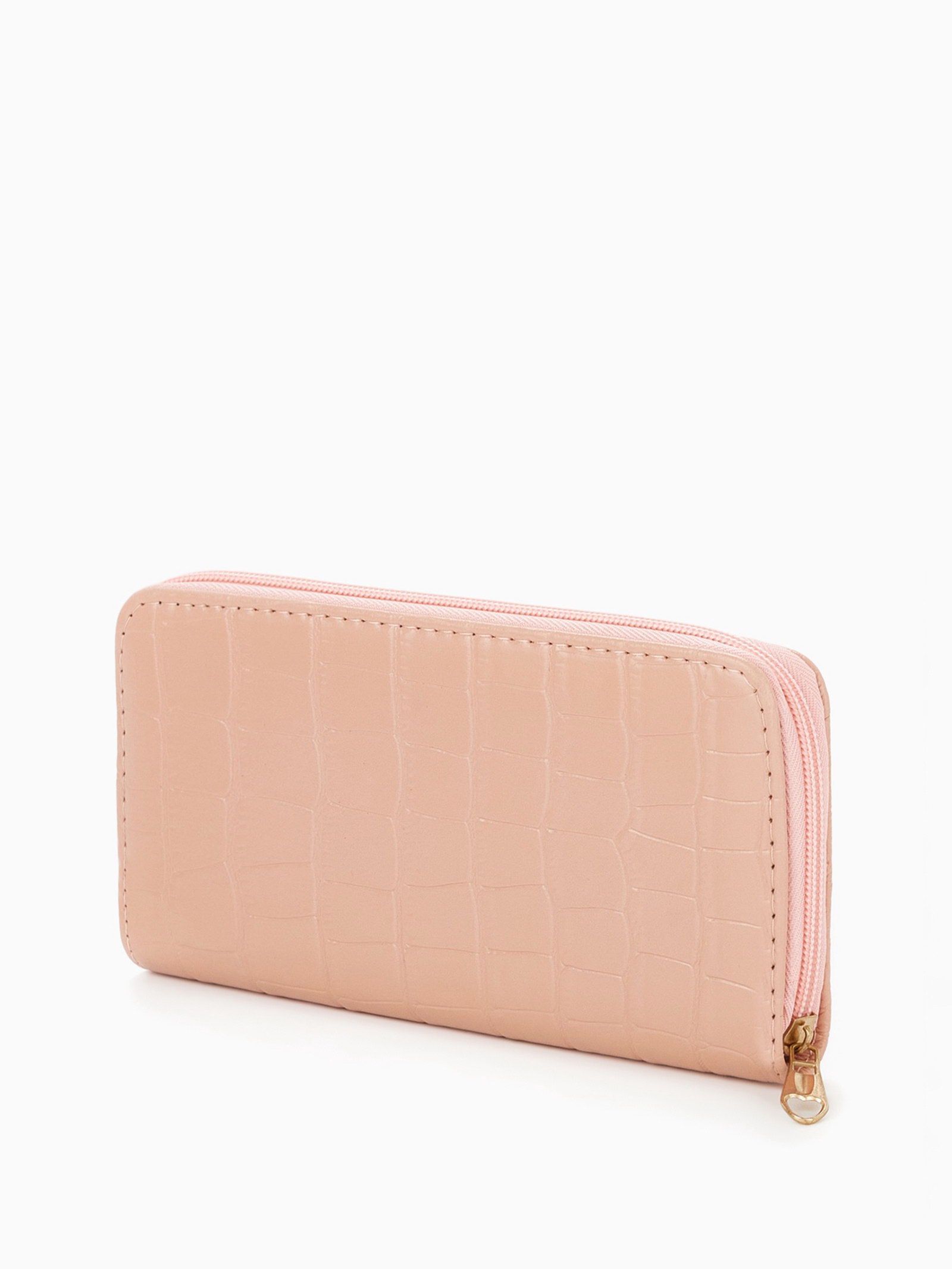 Кошелёк женский на молнии, 19.5x2.5x10 см, с текстурой, бежево-розовый, 2.5x19x10 см., Китай