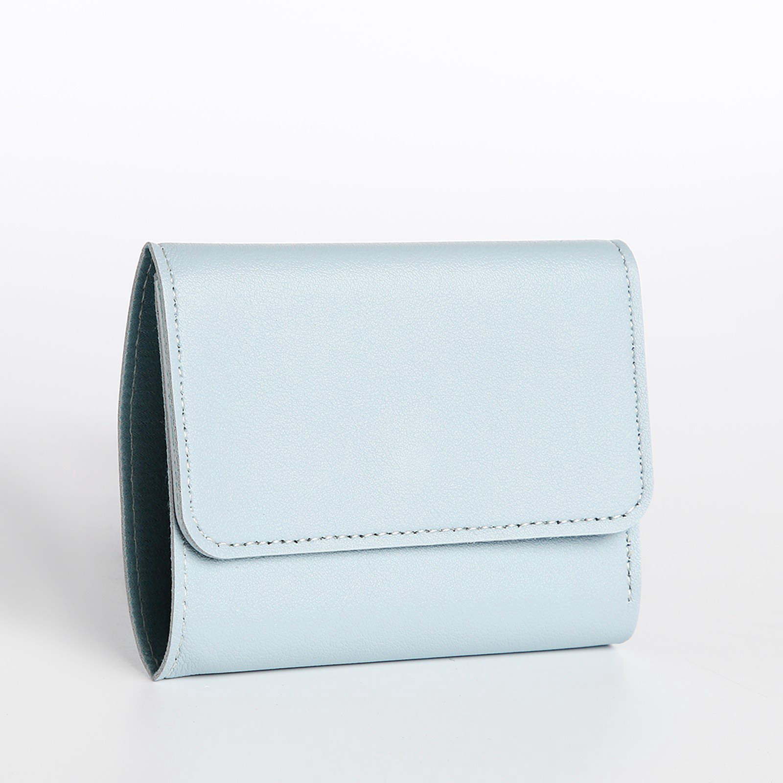 Кошелёк женский на кнопке 11.5x0.5x9 см, однотонный, нежно-голубой, 0.5x11.5x9 см., Китай