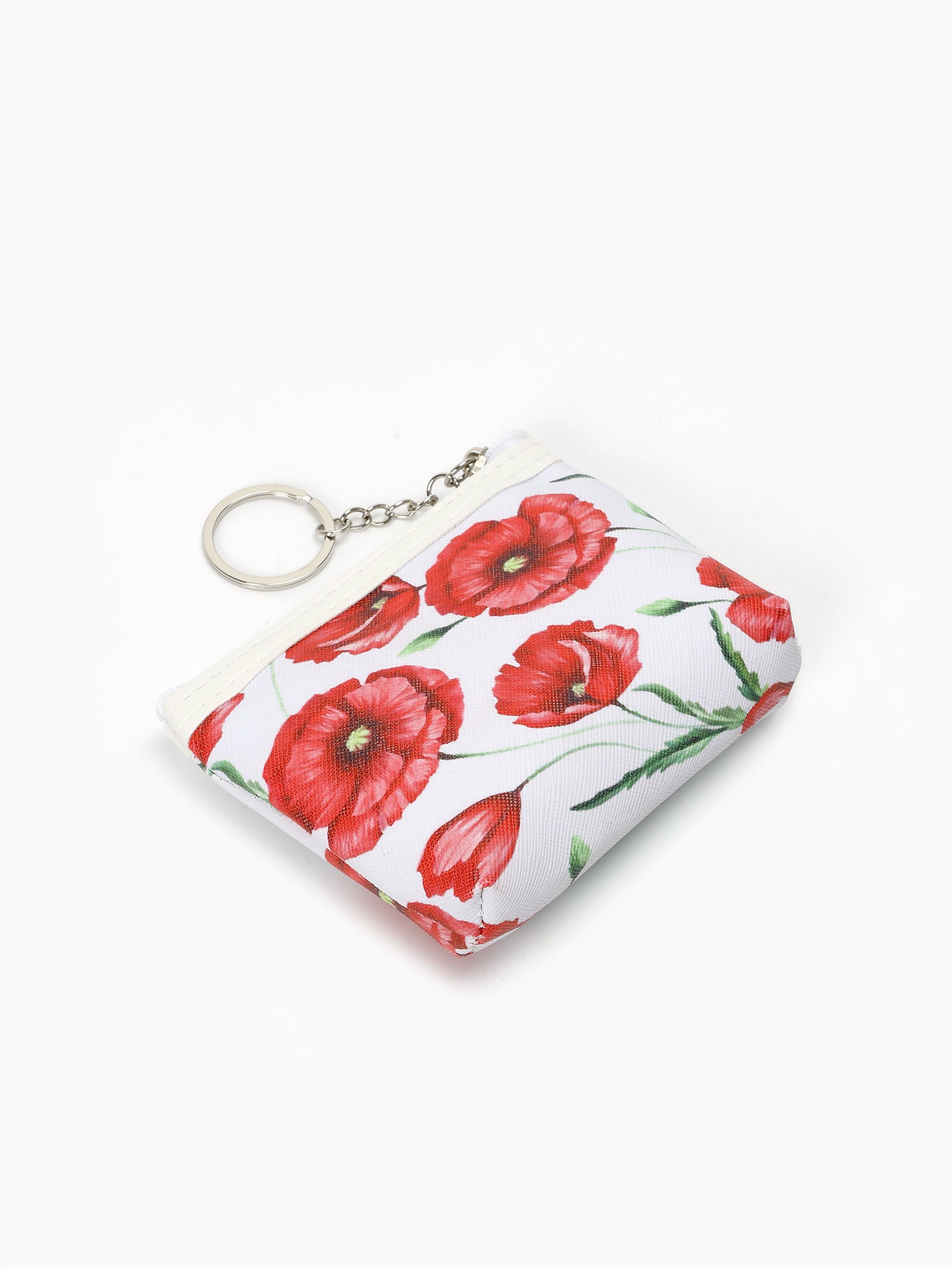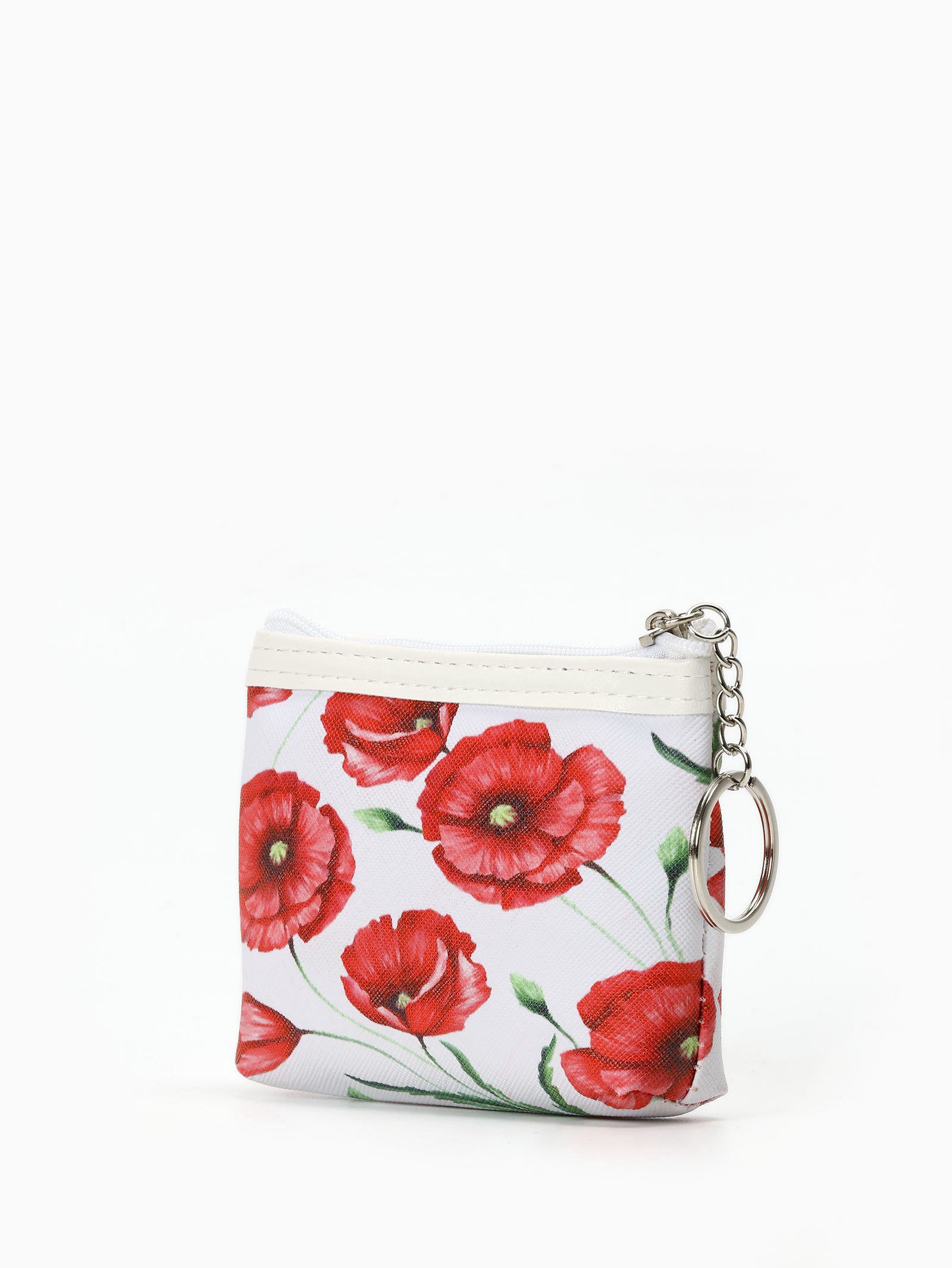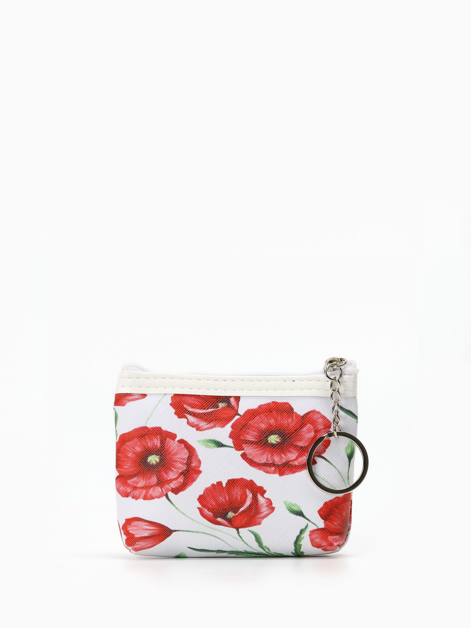 Кошелёк-монетница на молнии 10x3.5x9 см, в цветочным принтом, белый/красный, 3.5x10x9 см., Китай