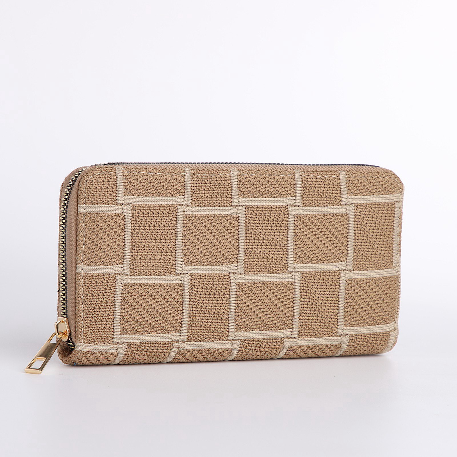 Кошелёк женский на молнии, 19.5x2.5x10 см, с геометрическим узором, бежевый, 2.5x19.5x10 см., Китай