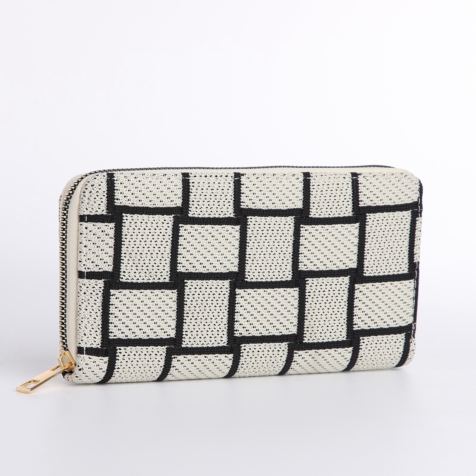 Кошелёк женский на молнии, 19.5x2.5x10 см, с геометрическим узором, белый/чёрный, 2.5x19.5x10 см., Китай