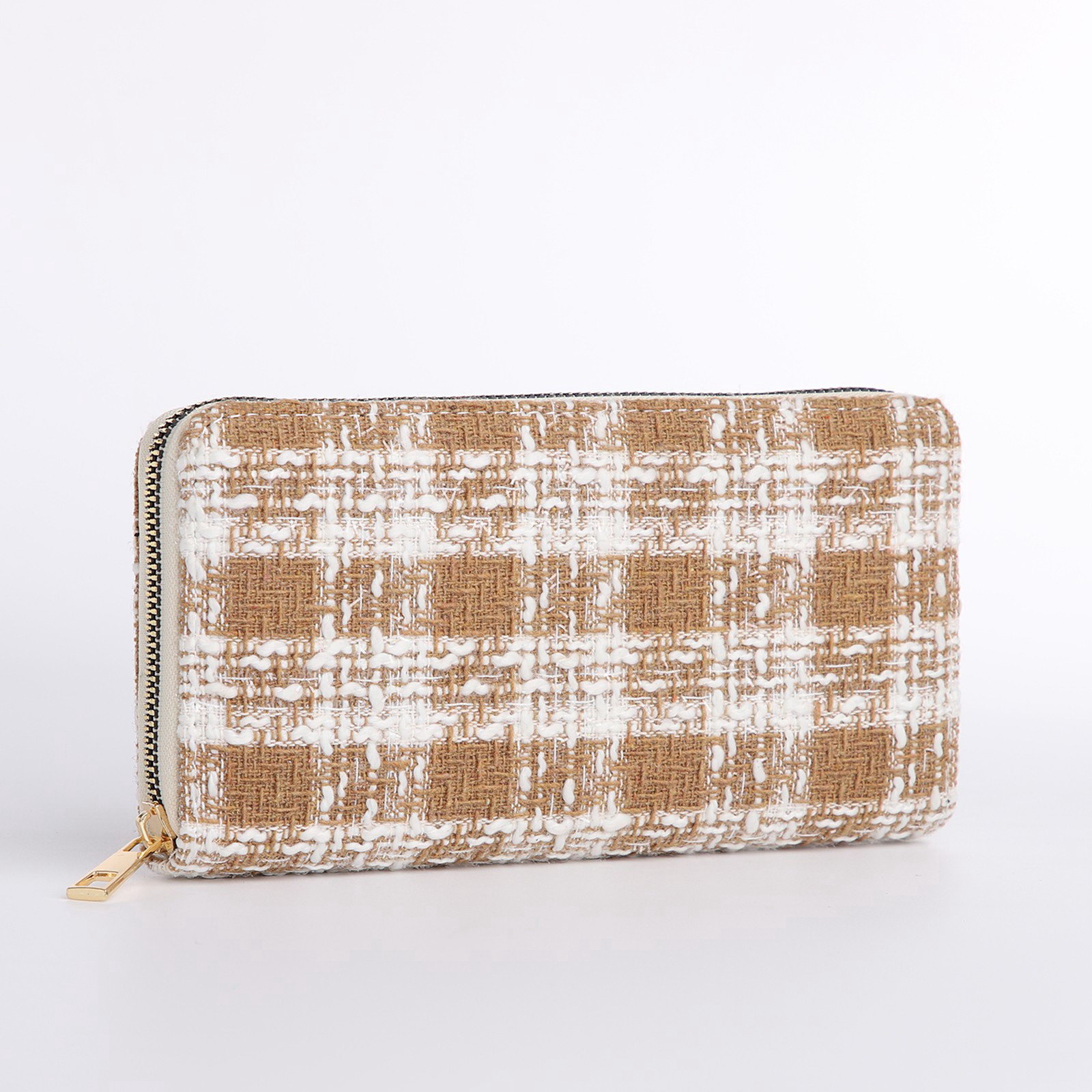 Кошелёк женский на молнии, 19.5x2.5x10 см, в клетку, бежевый, 2.5x19.5x10 см., Китай