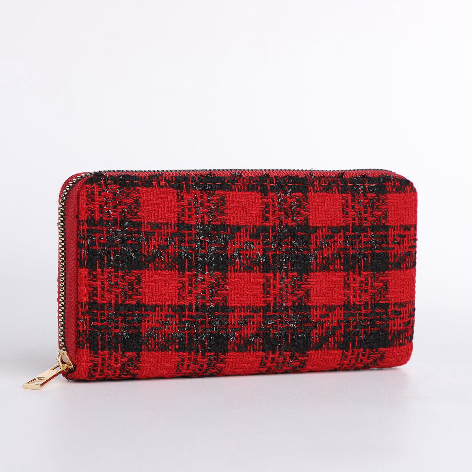Кошелёк женский на молнии, 19.5x2.5x10 см, в клетку, красный, 2.5x19.5x10 см., Китай
