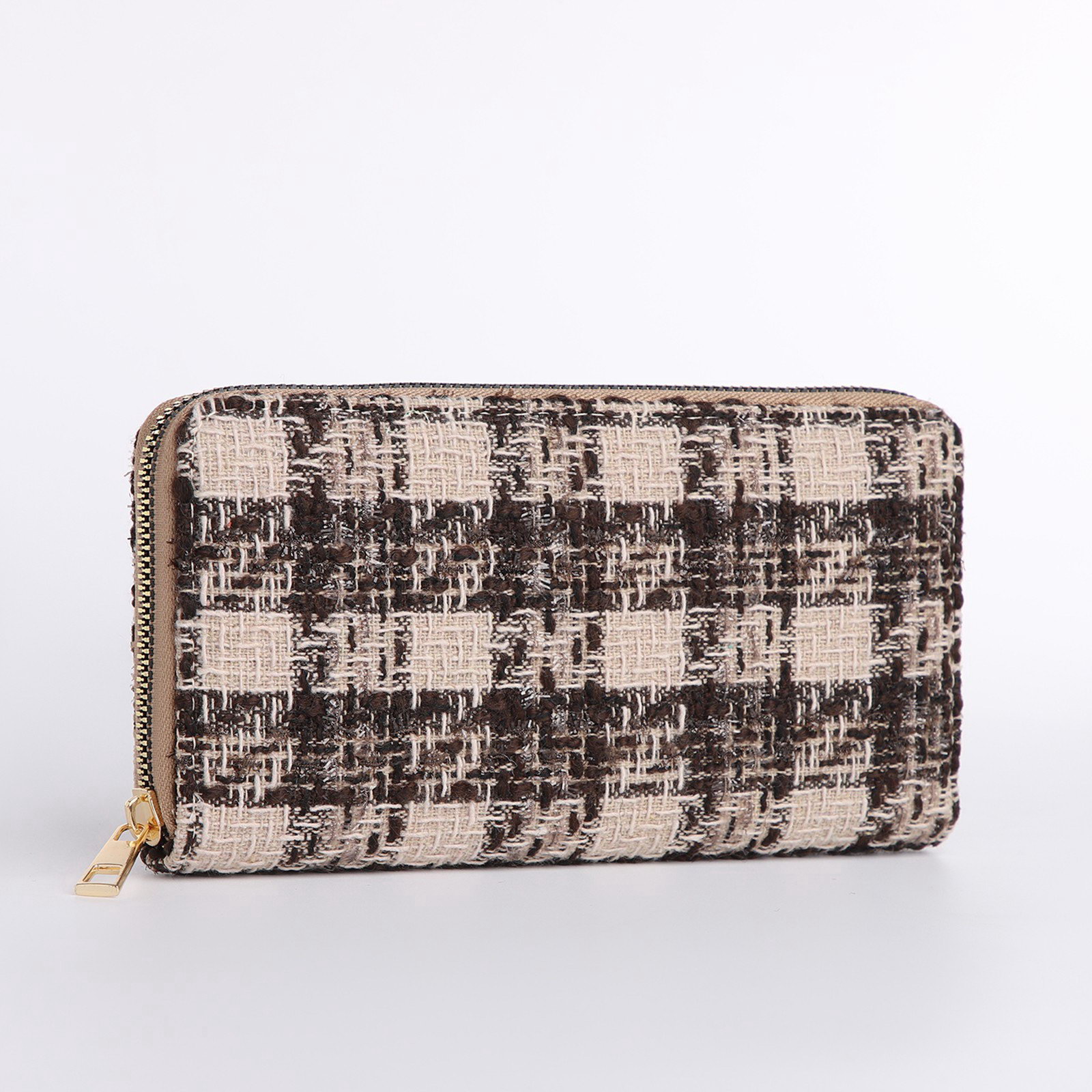 Кошелёк женский на молнии, 19.5x2.5x10 см, в клетку, коричневый, 2.5x19.5x10 см., Китай