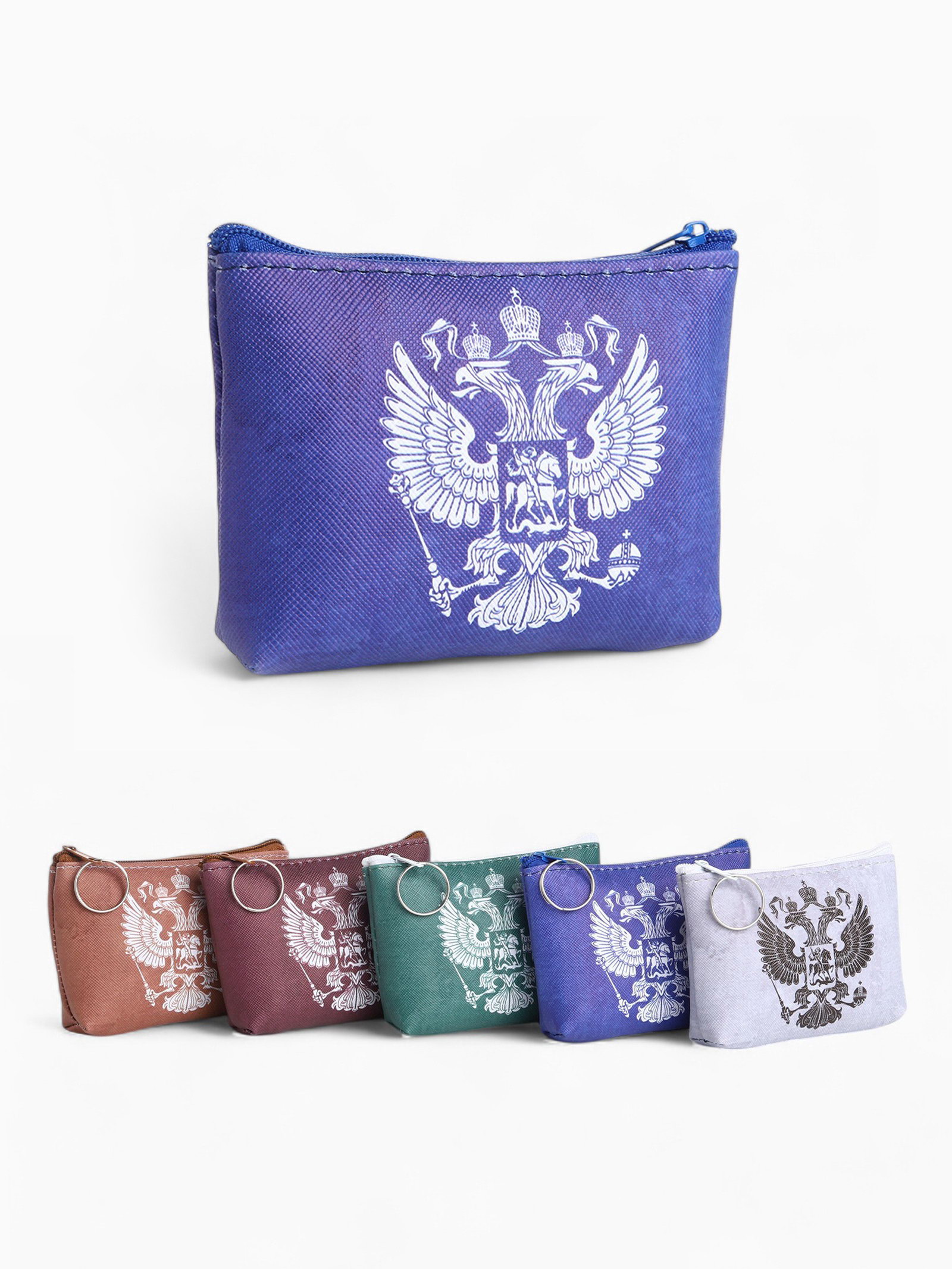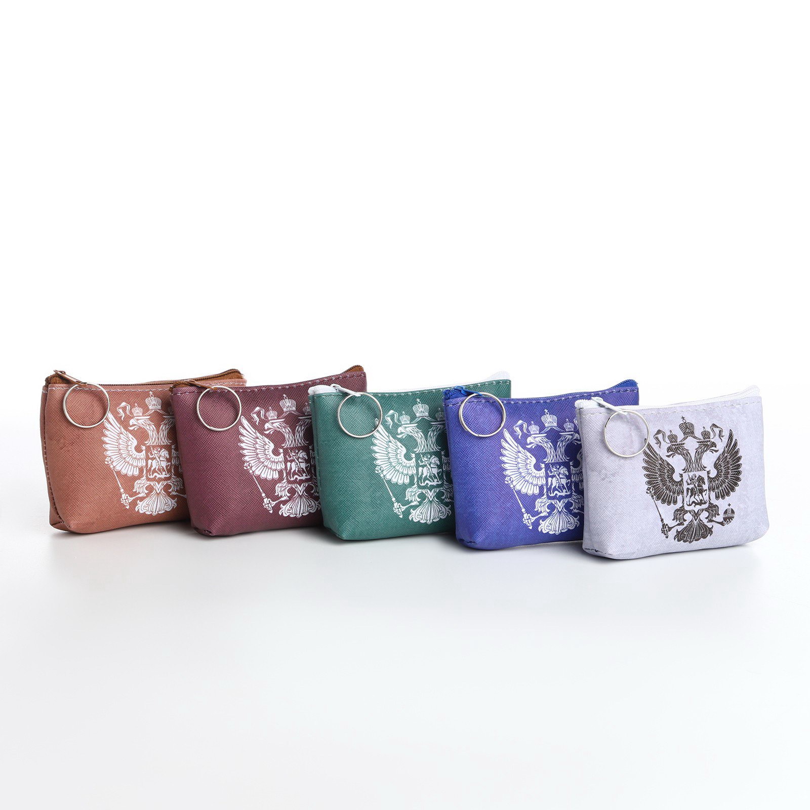 Кошелёк-монетница на молнии, 10x2.5x9 см, с гербом РФ, МИКС, 2.5x10x9 см., Китай