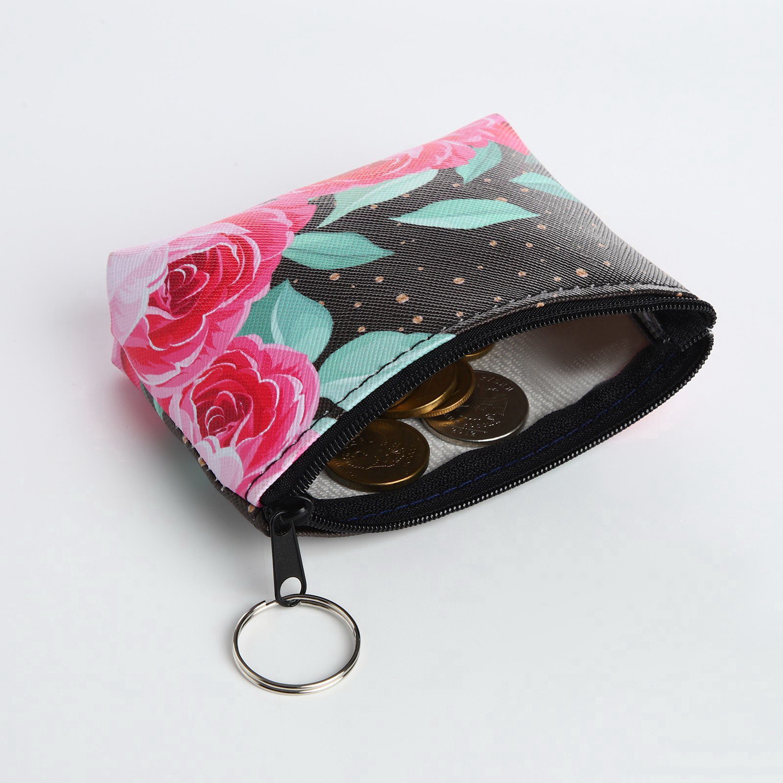 Кошелёк-монетница на молнии, 10x2.5x9 см, с цветочным принтом, МИКС, 2.5x10x9 см., Китай