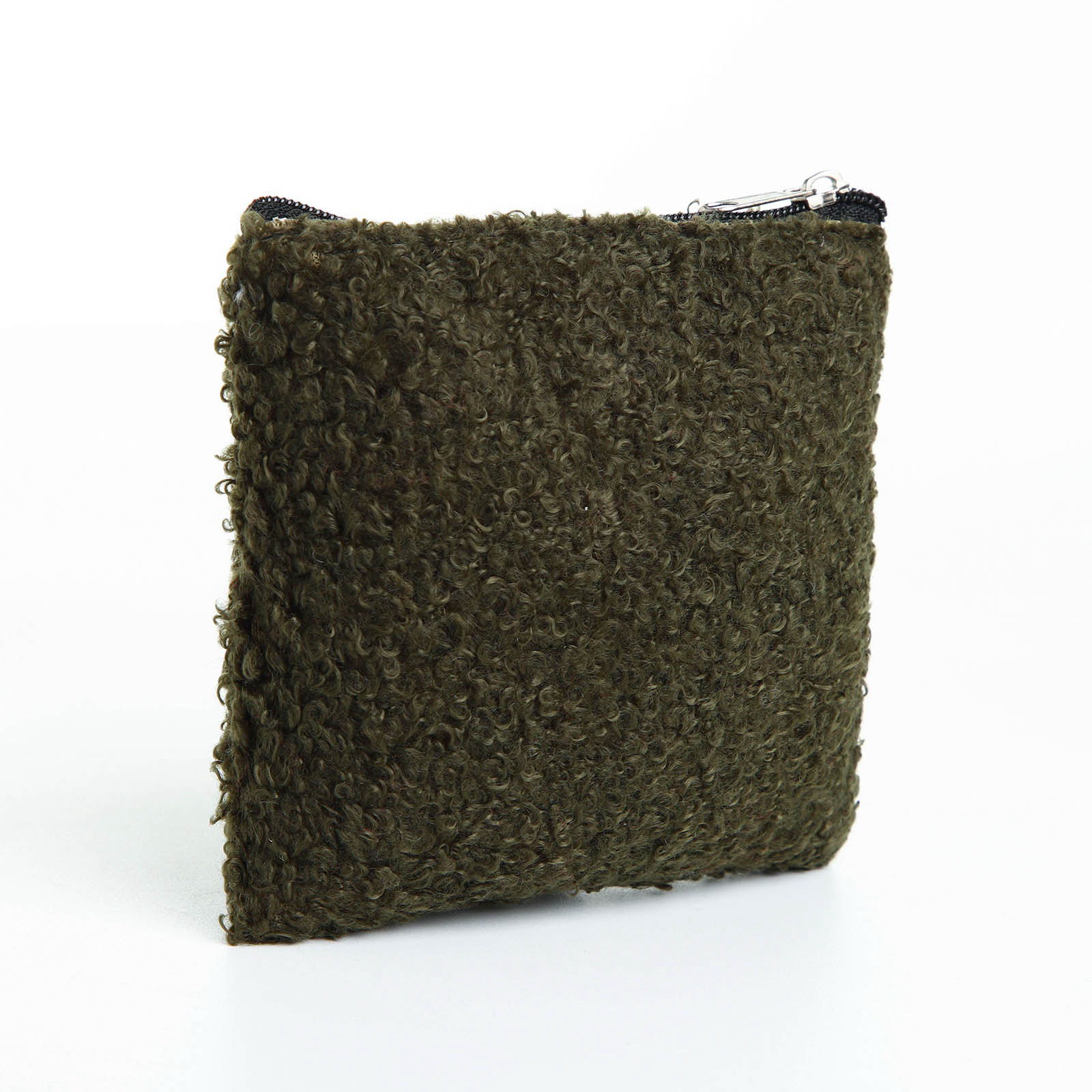 Кошелёк-монетница на молнии 11x1x8 см, плюшевый, хаки, 1x11x8 см., Китай