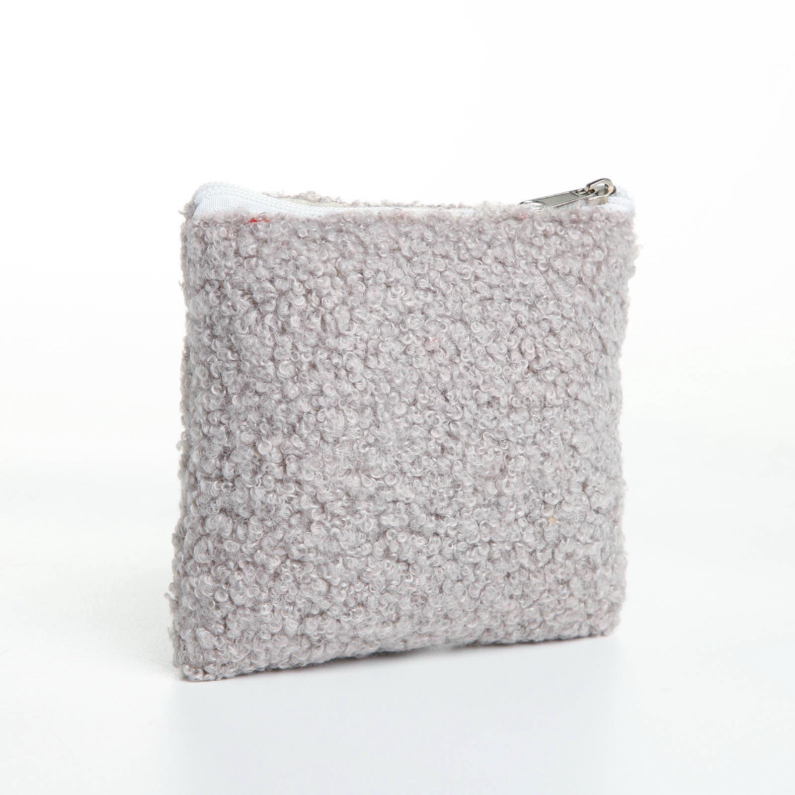Кошелёк-монетница на молнии 11x1x8 см, плюшевый, серый, 1x11x8 см., Китай