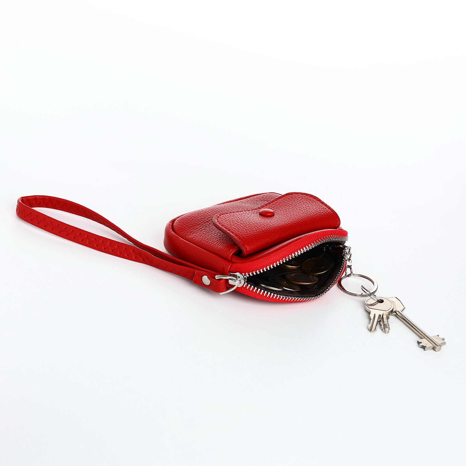 Кошелёк-ключница на молнии с ремешком, цвет красный, 3.5x12.5x10 см., КИТАЙ