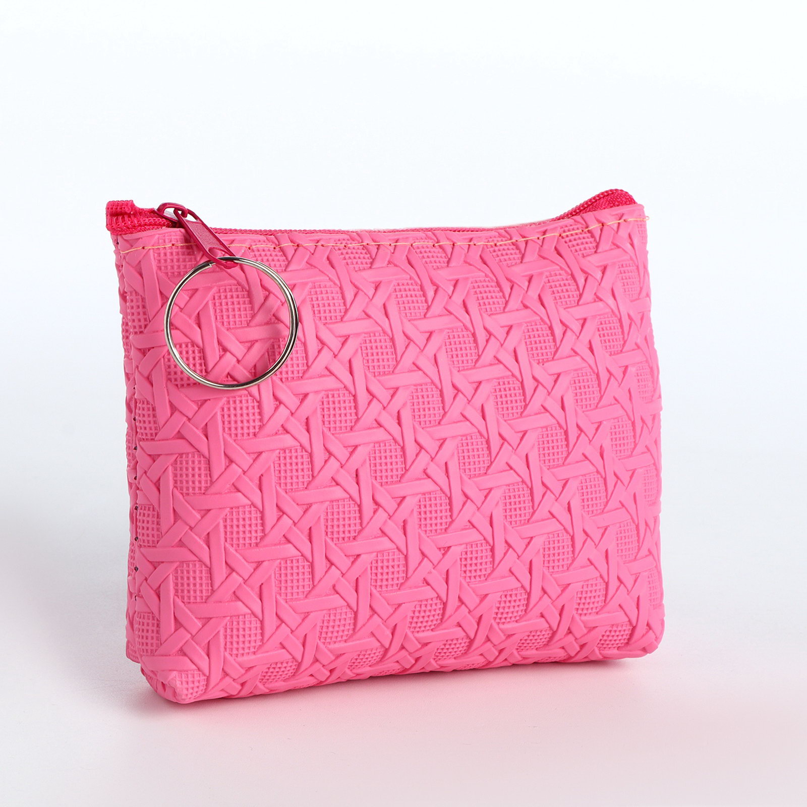 Кошелёк-монетница на молнии, 12x2.5x8.5 см, розовый, 2.5x12x8.5 см., Китай