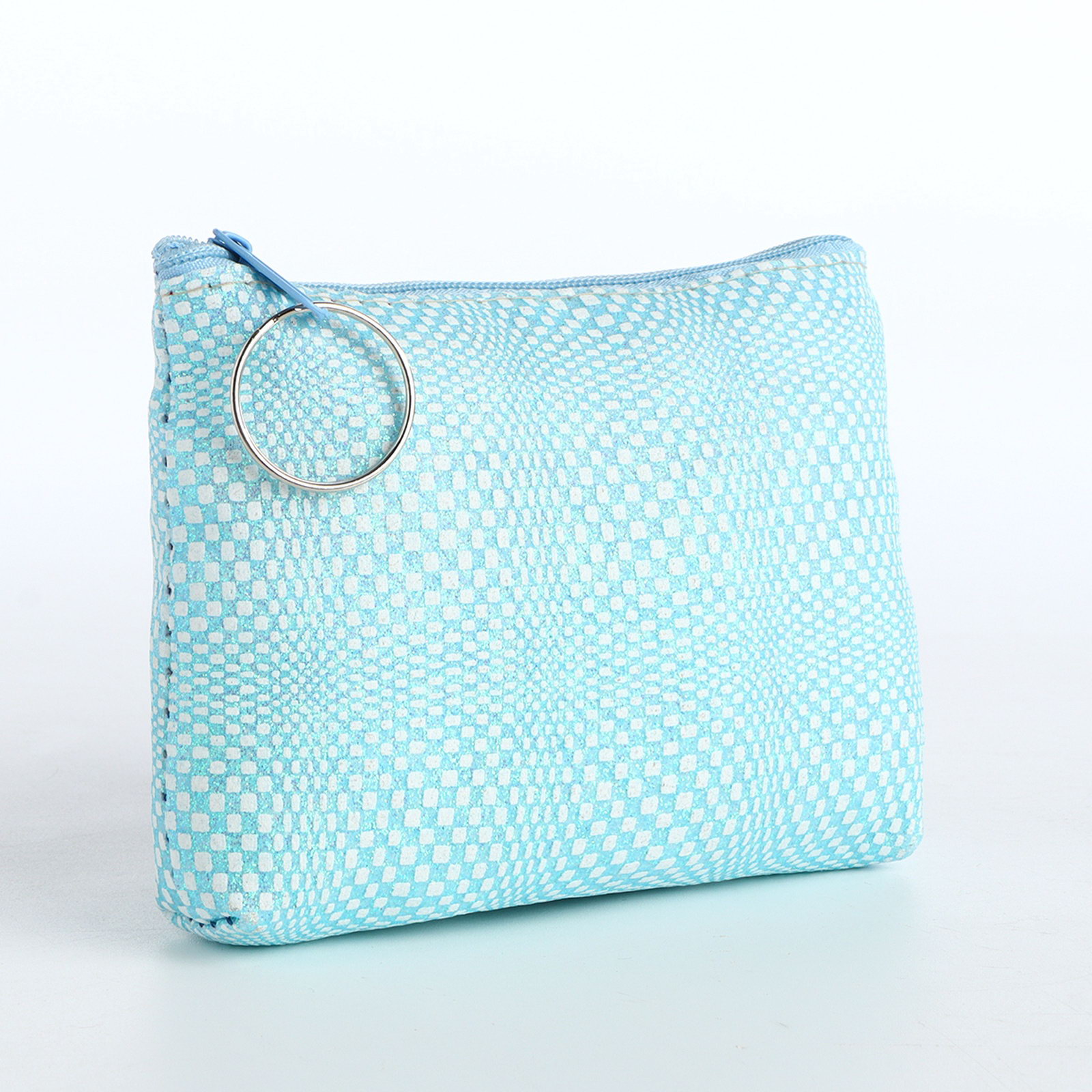 Кошелёк-монетница на молнии, 12x2.5x8.5 см, голубой, 2.5x12x8.5 см., Китай