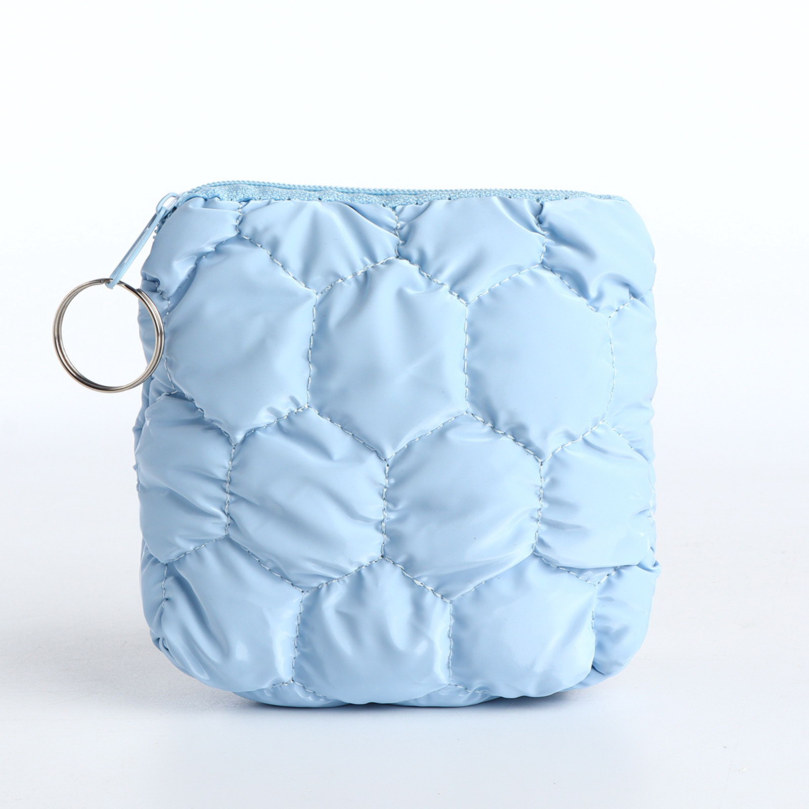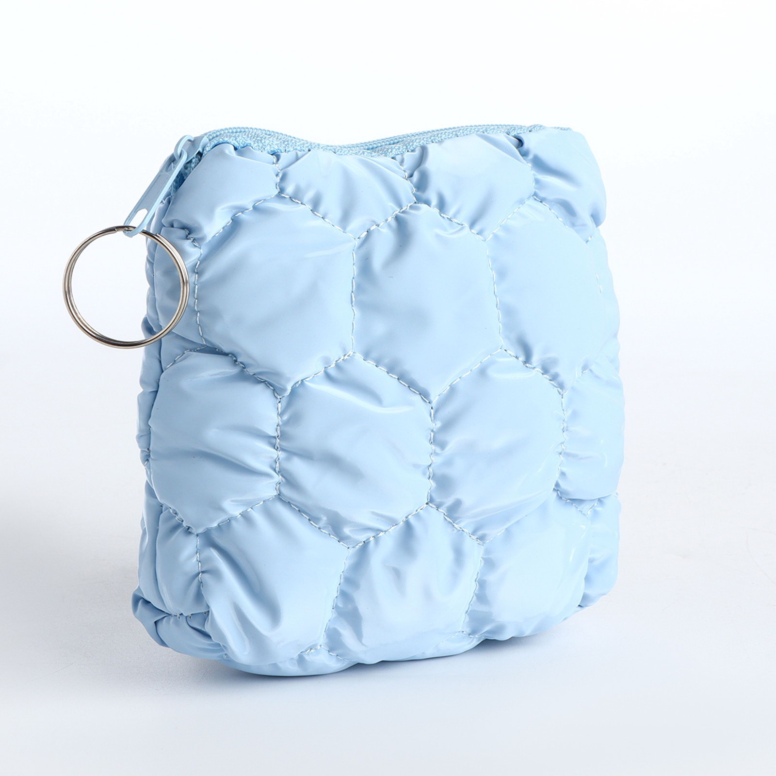 Кошелёк-монетница на молнии, 12x2.5x8.5 см, мягкий, голубой, 2.5x12x8.5 см., Китай