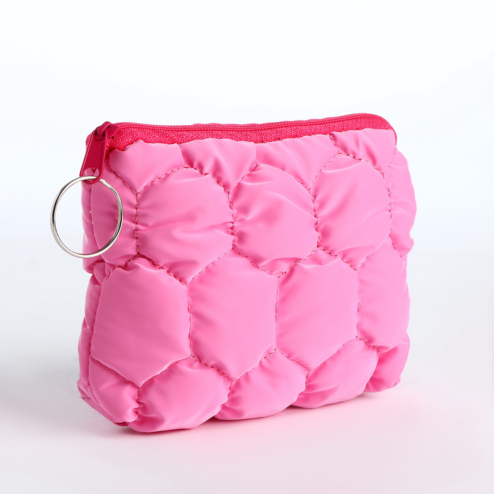 Кошелёк-монетница на молнии, 12x2.5x8.5 см, мягкий, розовый, 2.5x12x8.5 см., Китай
